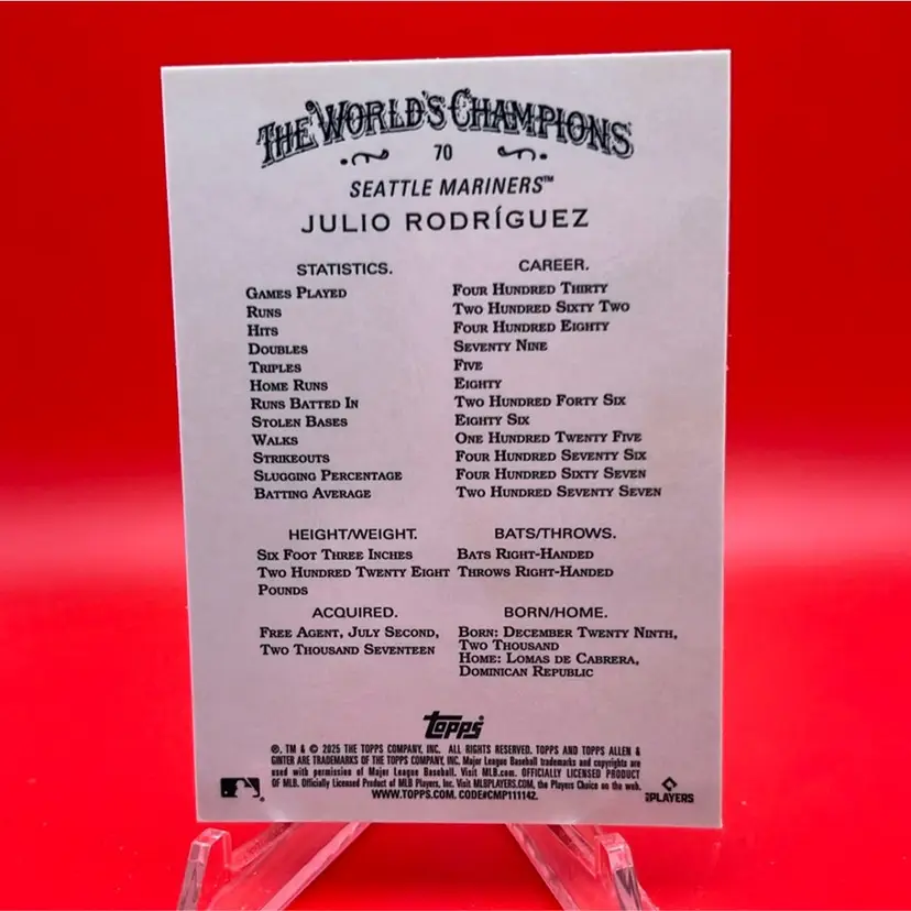 Julio Rodriguez 2025 Topps Allen & Ginter Green Chrome 77/99 Seattle Mariners