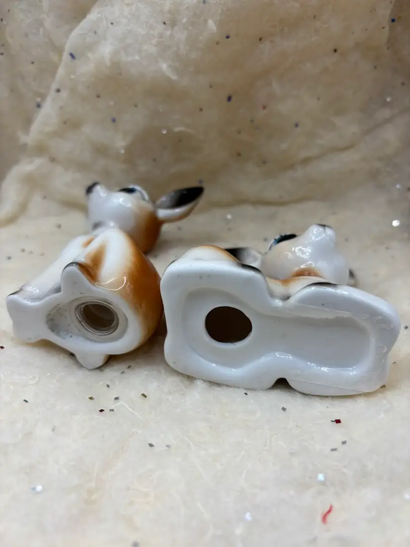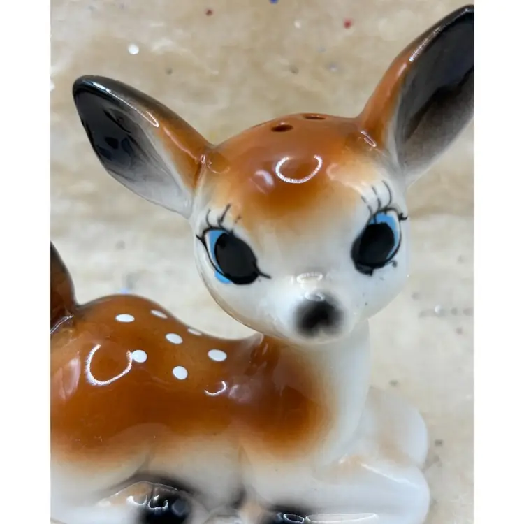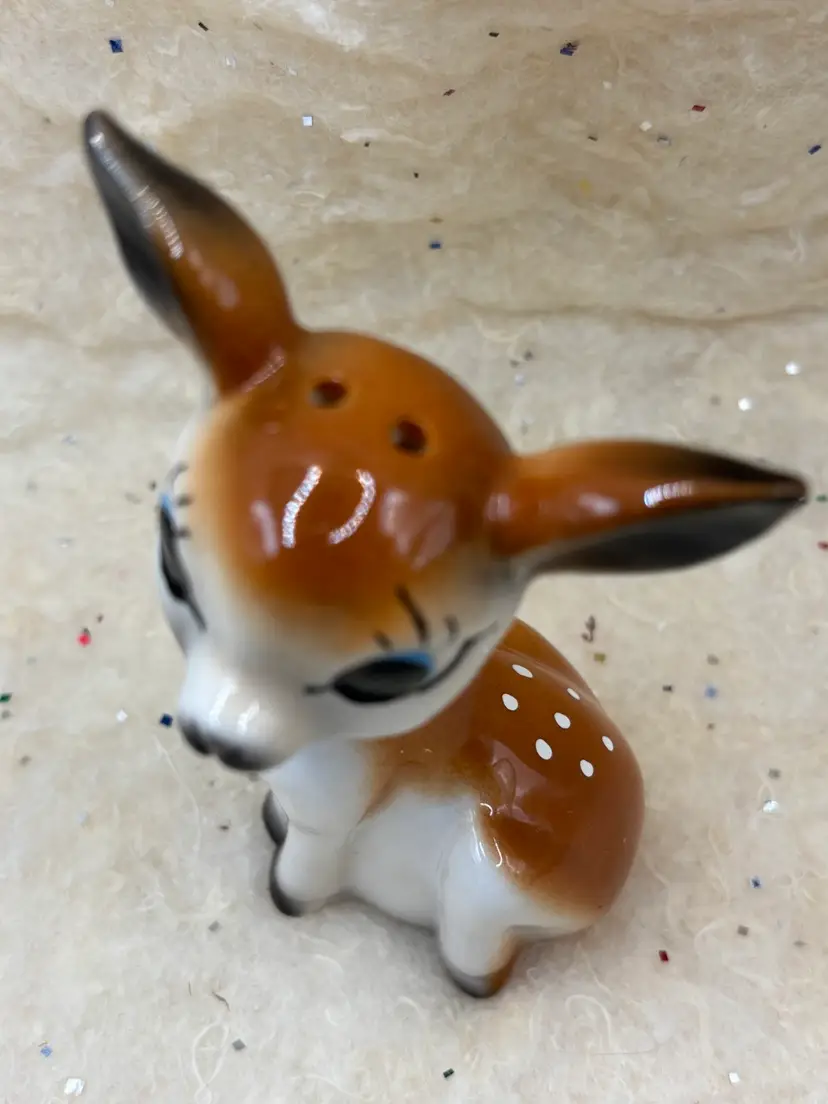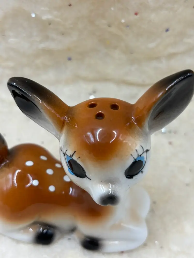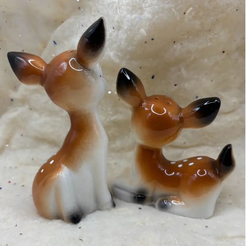 Cutest deer salt and pepper shakers One is missing plug, no chips or cracks 4” and 3-1/2” tall