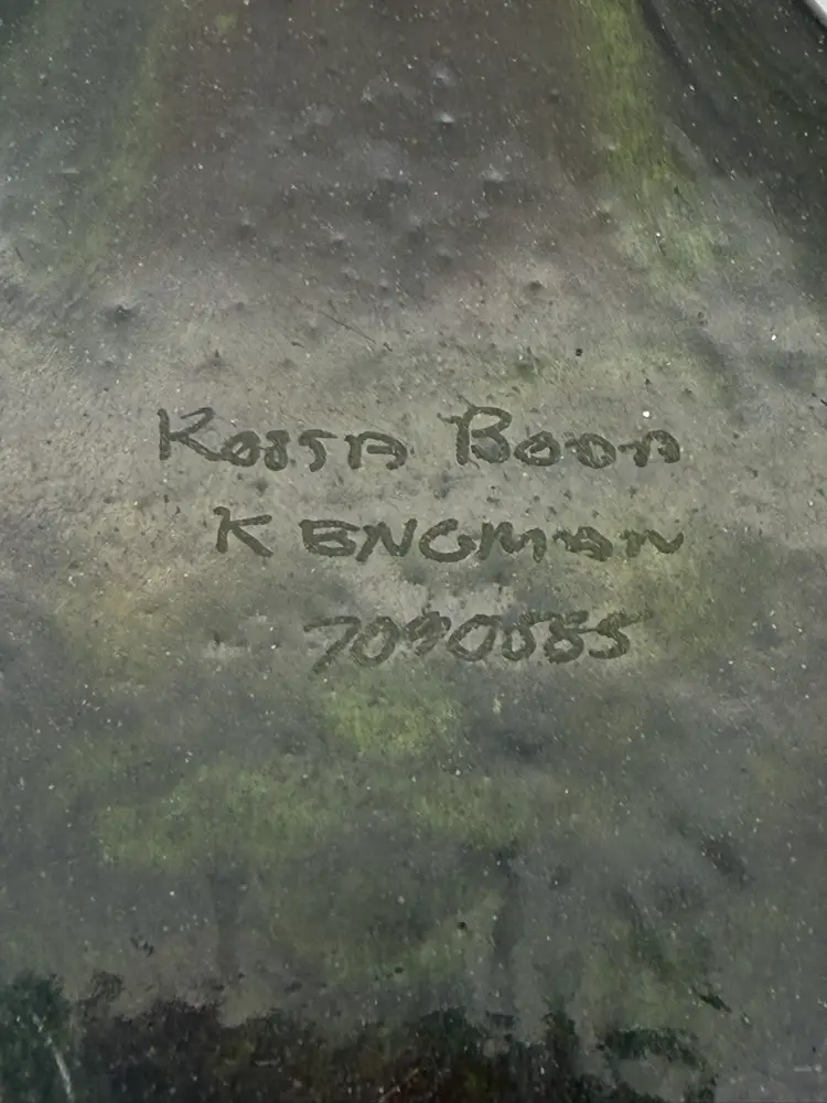 Measures 6.5” tall, 3” wide No chips or cracks Has built clip for hanging Signed Kosta Boda, K Engman, 7090565