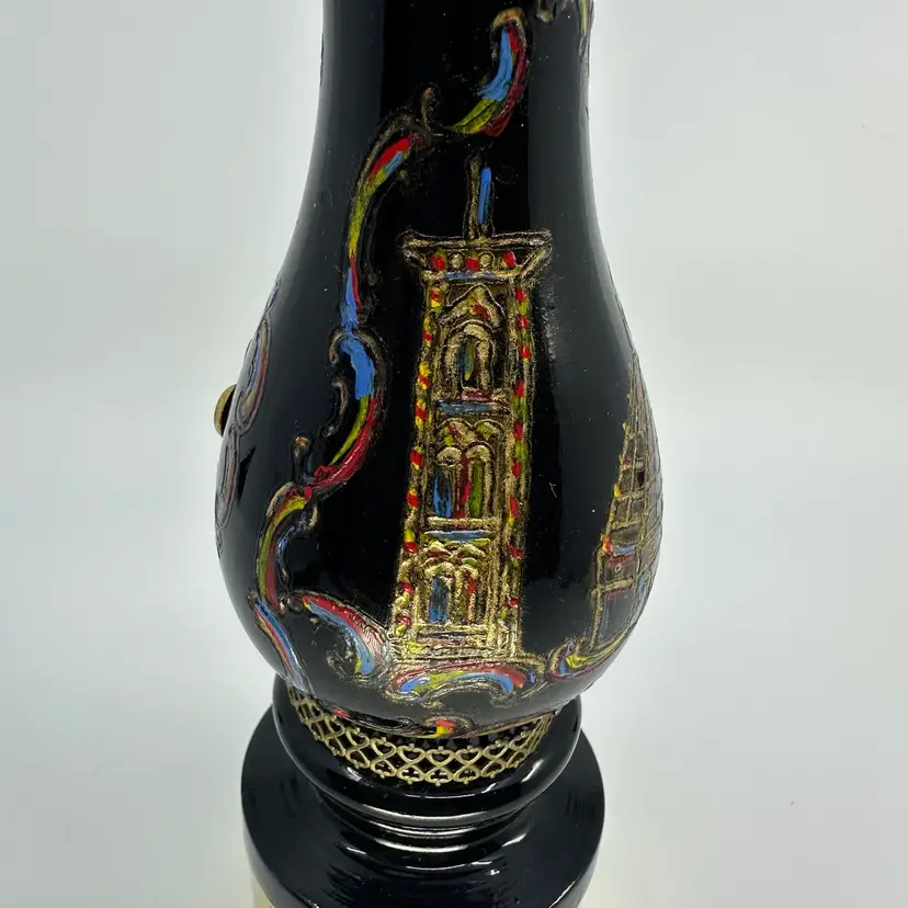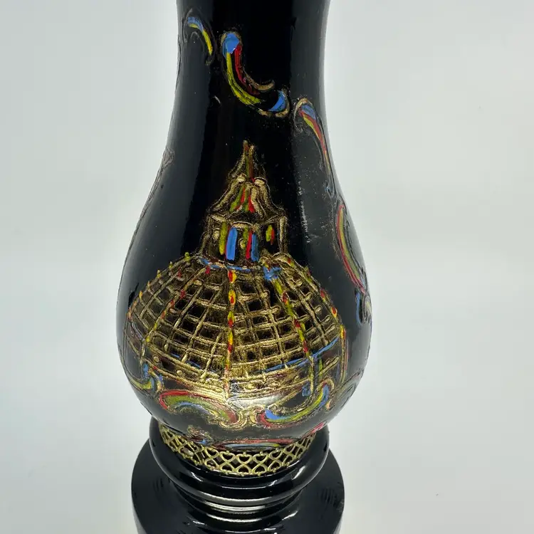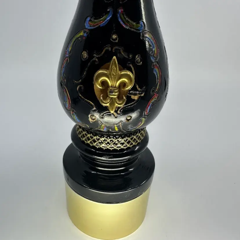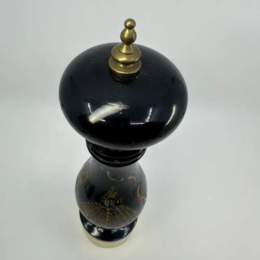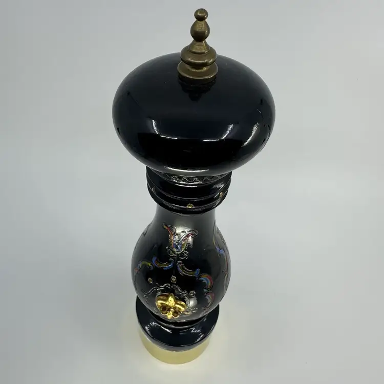Large Hand Painted Italian Wooden Pepper Mill Grinder Brass Finial Base
