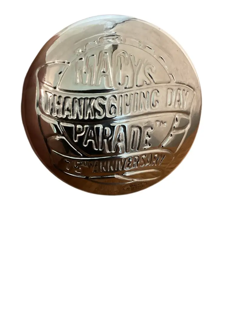 The Lenox 2000 Macy's 75th Anniversary Thanksgiving Day Parade Christmas Ornament is a vintage collectible that celebrates the iconic Macy's Thanksgiving Day Parade. This round, multicolor ornament from 2001 features the franchise's theme of Christmas and is part of the Thanksgiving collection by Lenox. With a hanging and standing design, this original piece is a unique addition to any holiday decor, perfect for adult collectors looking to commemorate this special event.