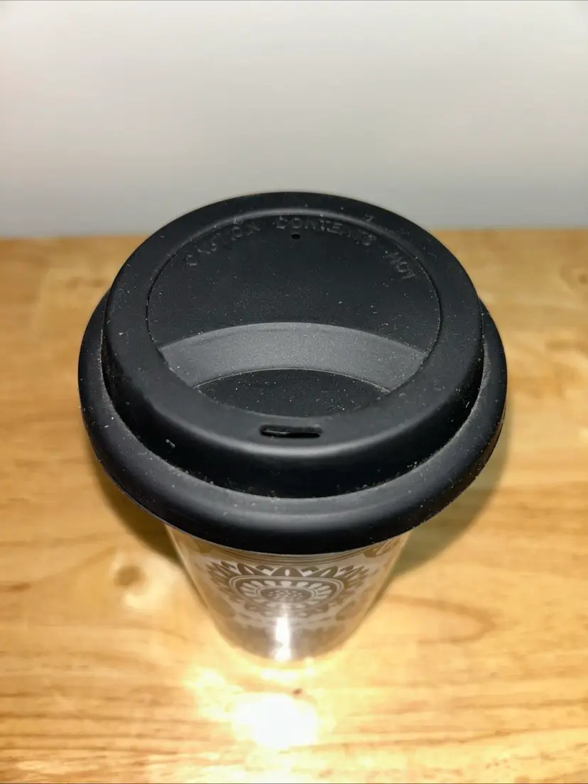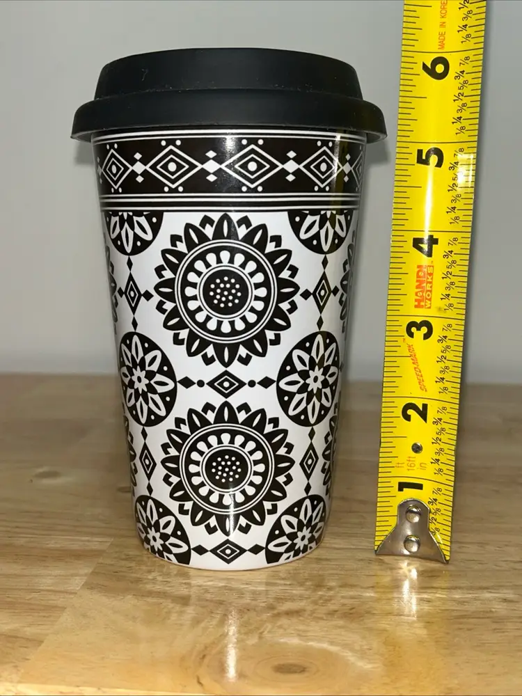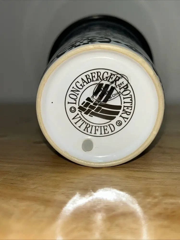 Longaberger black medallion ceramic travel coffee mug black silicone lid mug. Holds 8oz. Flawless condition, silicone lid fits securely and is clean. Pet smoke free home. ** if you’re looking for some awesome drinkware, please take a look at my listings.
