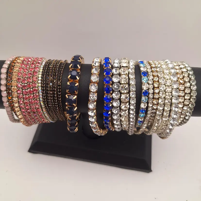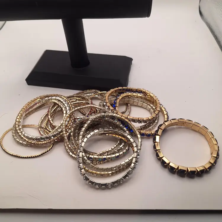 Lot Of 28 Used Elastic Unbranded Rhinestones Bracelets