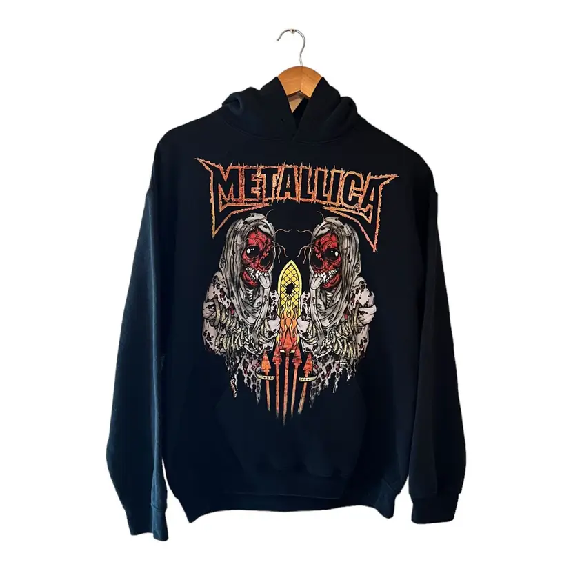 In gentle used condition. Black is still vibrant and no cracking on vinyl art. Some minor pilling in areas. No holes, fraying or bleach marks/stains.