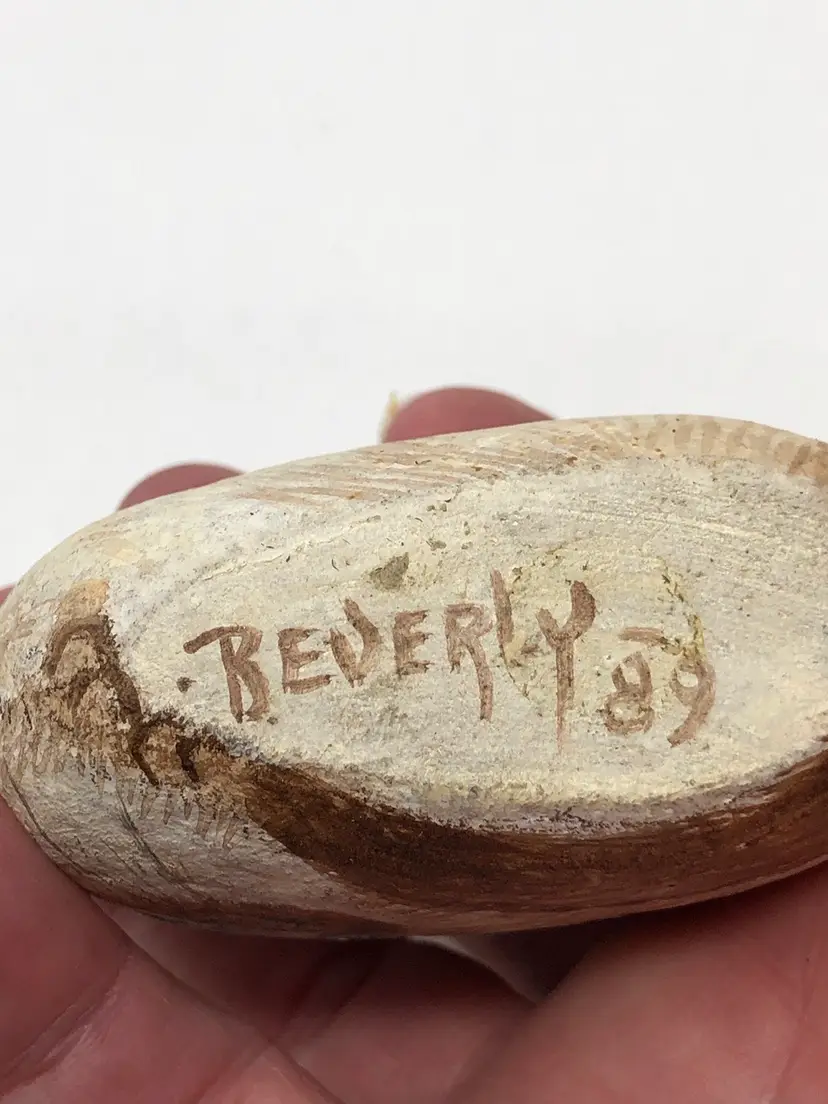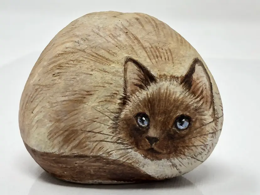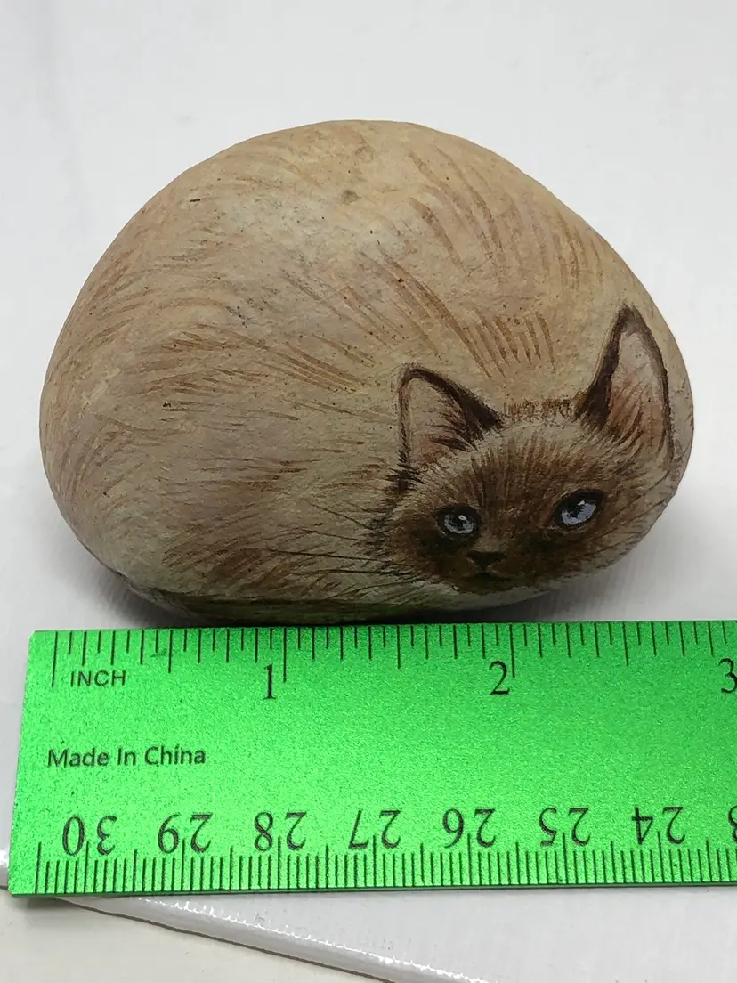 3" Siamese cat hand painted rock artist signed Beverly '89. Excellent condition.