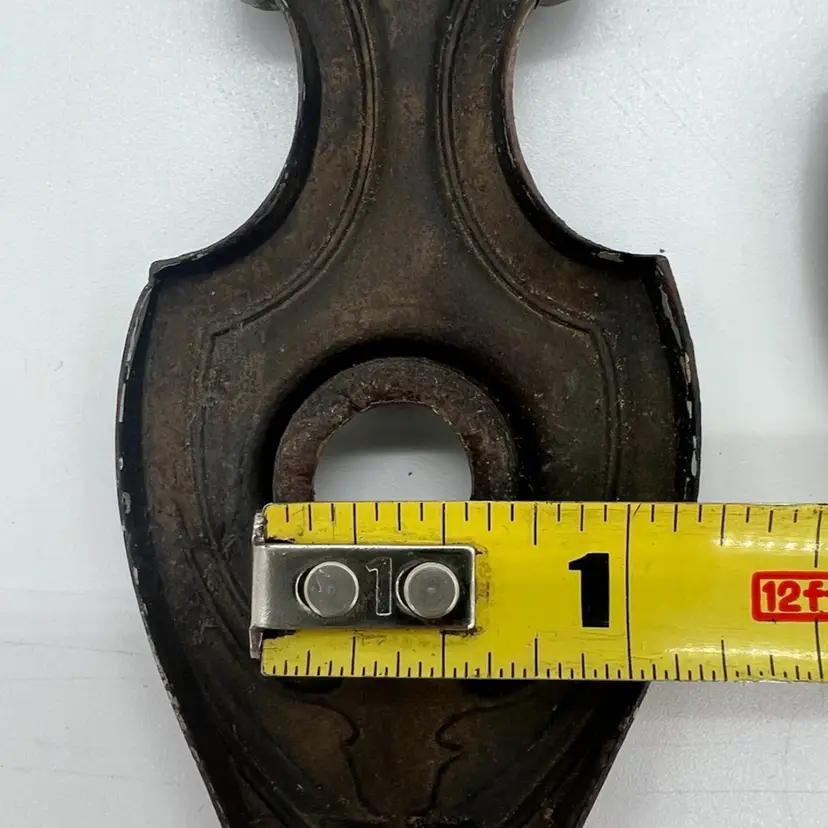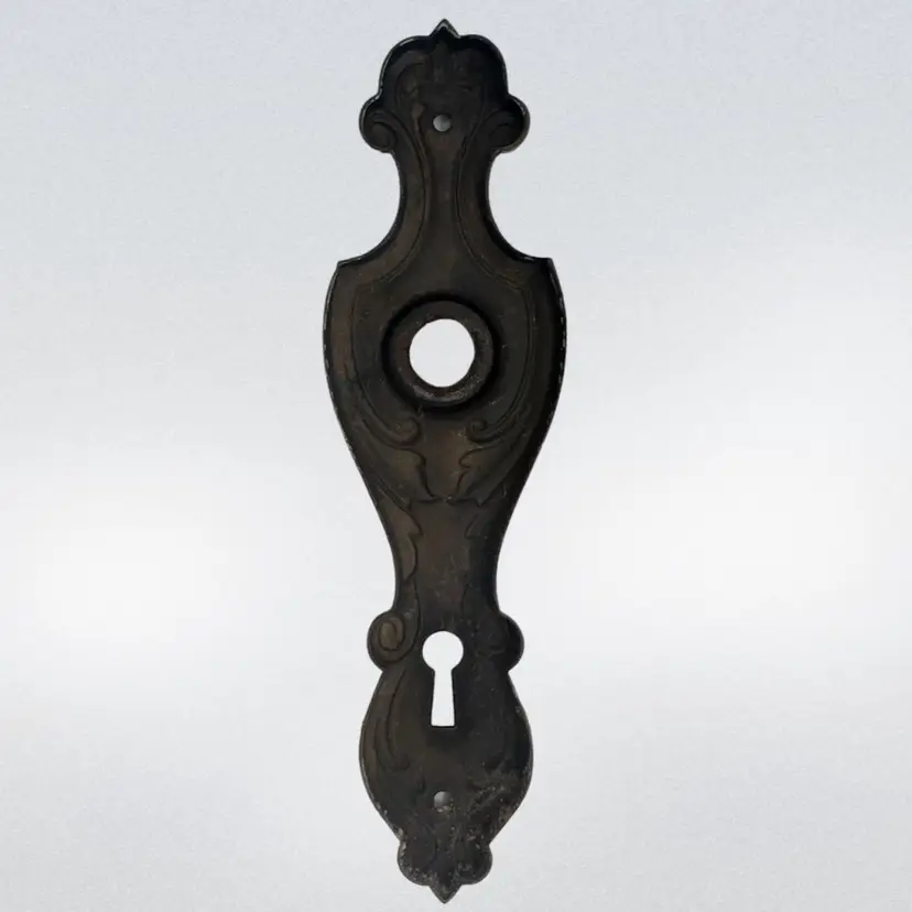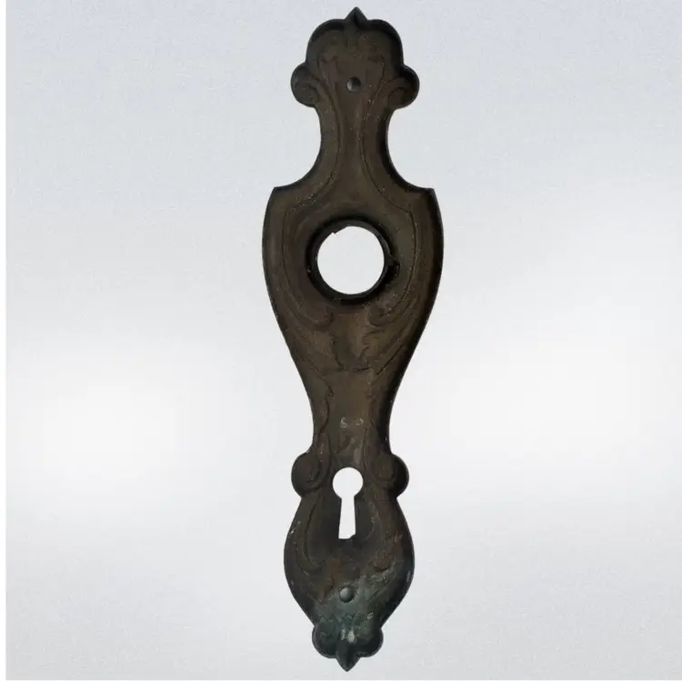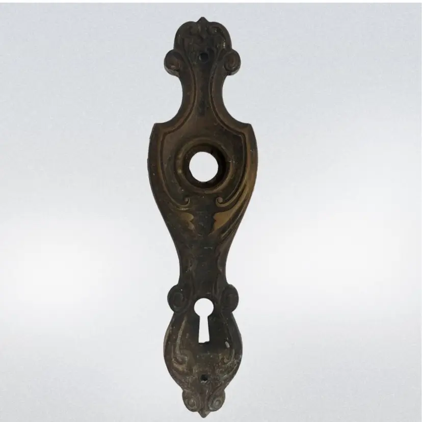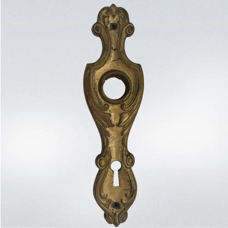 This pair of art nouveau door plates is gorgeous! I love that the one that was on the outside is weathered and has a gorgeous natural patina compared to the indoor one that still has most of its gold paint. I did not clean or attempt to restore at all for this reason. They are about 6” tall and about 1 3/4” wide.