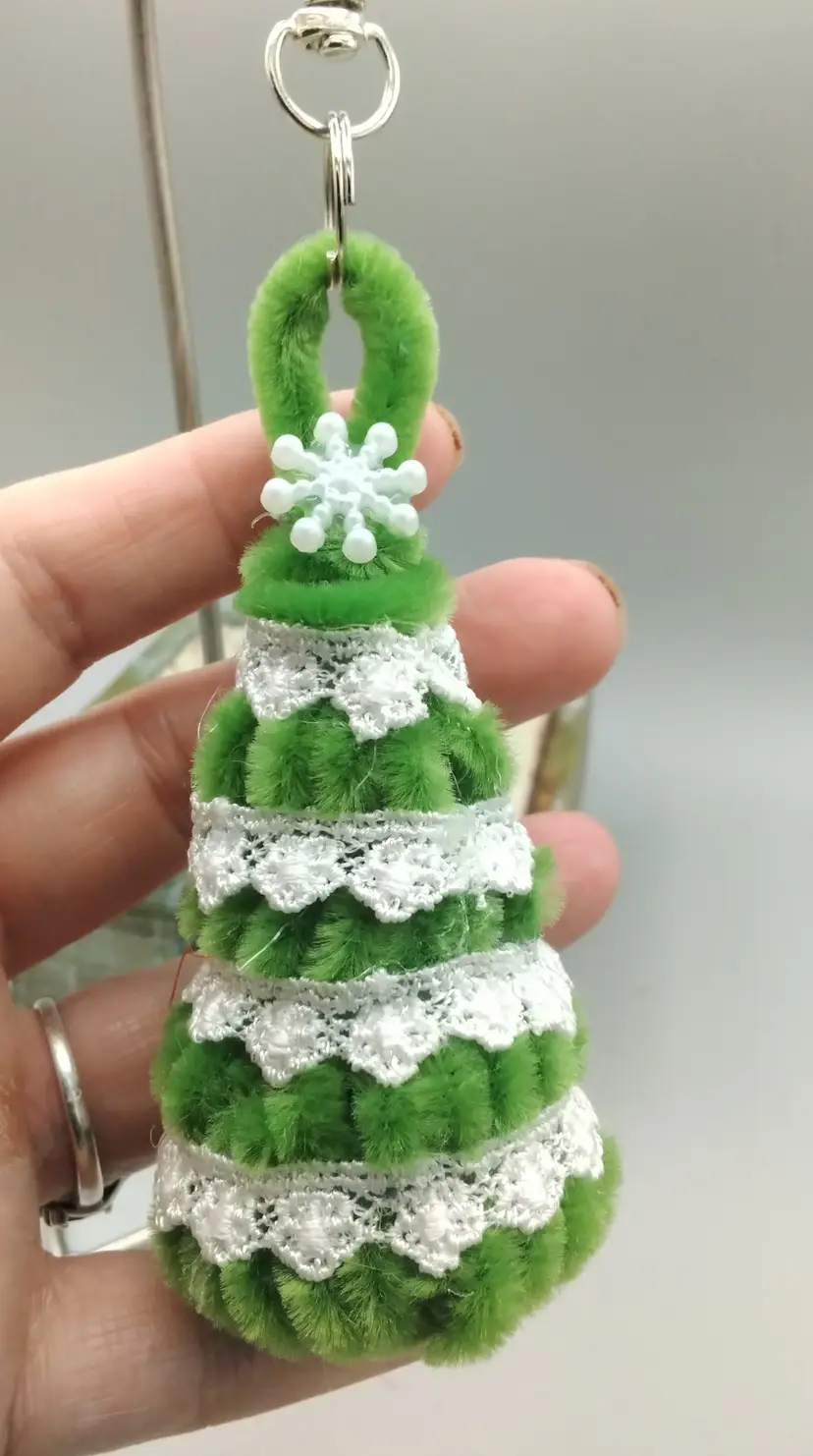 PARKISONS FUNDRAISER, These pipecleaner Christmas trees are equipped with metal keyring hardware, making it useful as a keyring, or decorative Excessory for backpacks, zipper pulls, tree ornaments, or gift topper decoration. These items have been made by my 11 year old granddaughter who is coping with the news that her Papa has been diagnosed with parkisons disease. She has a wish to sell her creations and donate the money earned to Parkisons Research. Please be kind, she is working hard spending all her spare time making these items, to earn money.