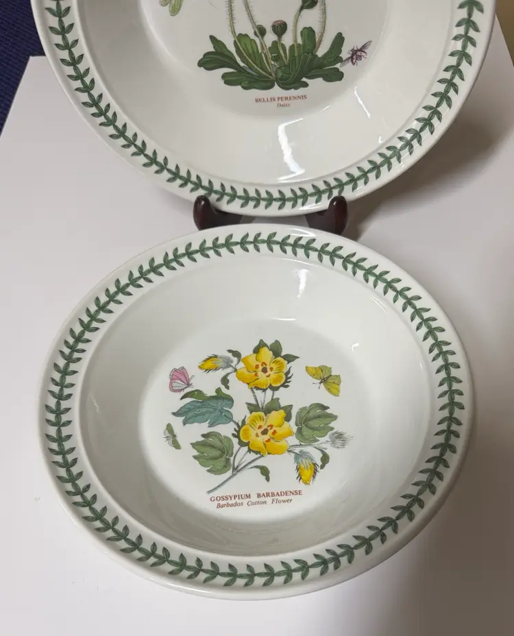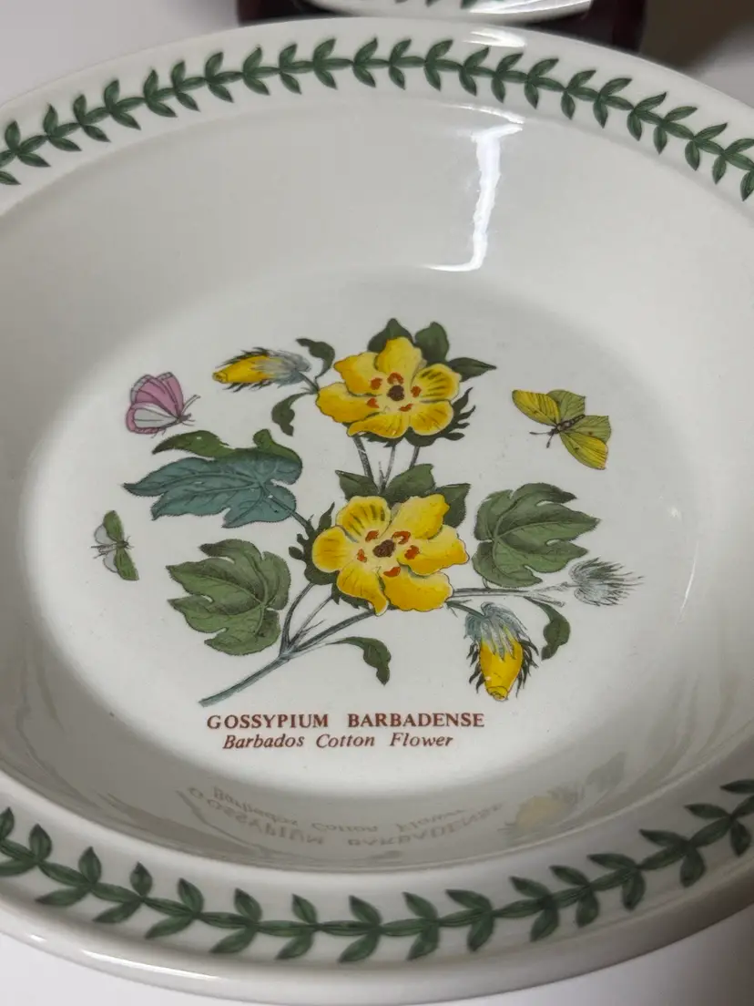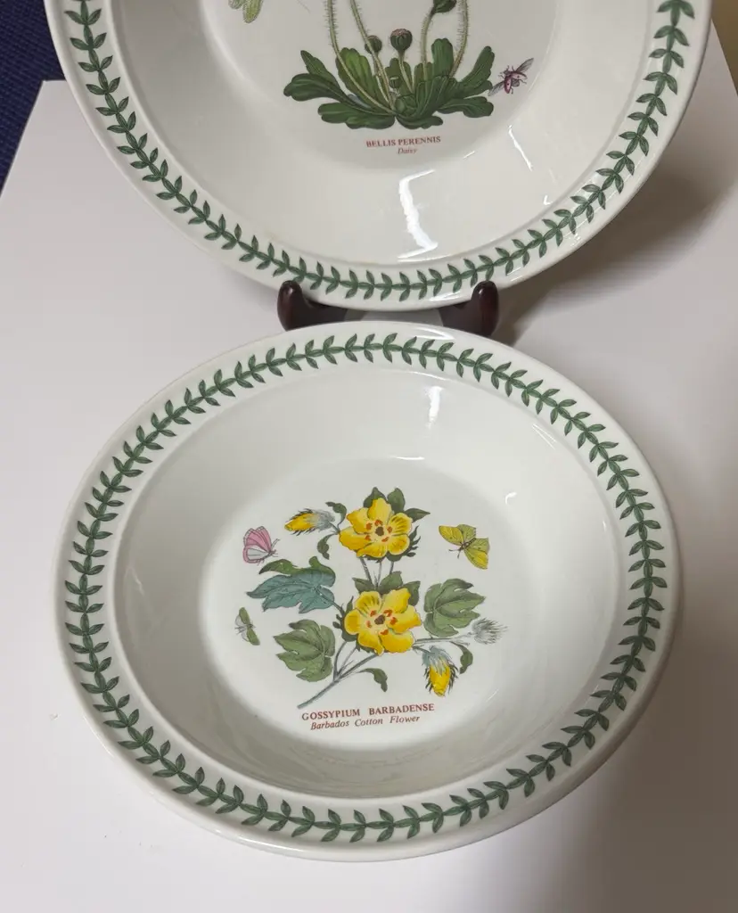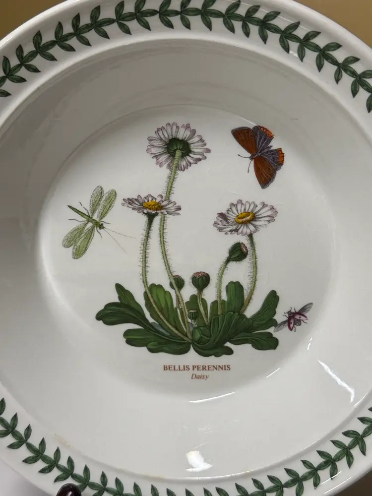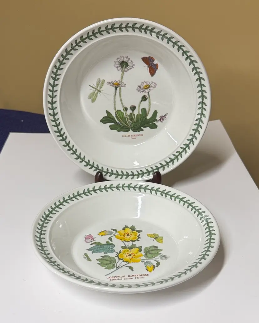 Charming botanical design. Features vibrant flowers and butterflies. Perfect for any dining setting. Portmeirion Bowls Botanic Garden 8.5 Inch Soup Salad Pasta Leaf Rimmed 1.5” deep Both in excellent condition with no breaks or chips some scratches from use (1378121255)