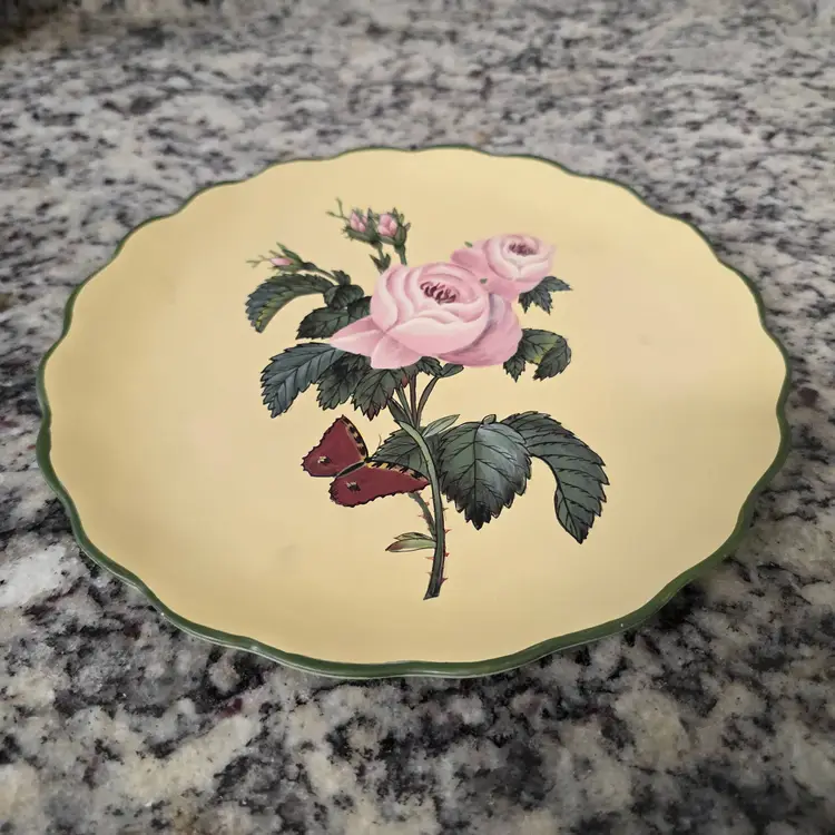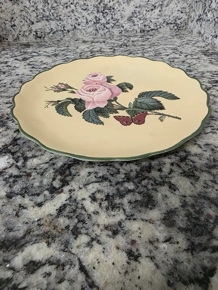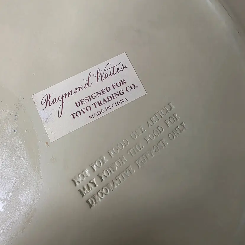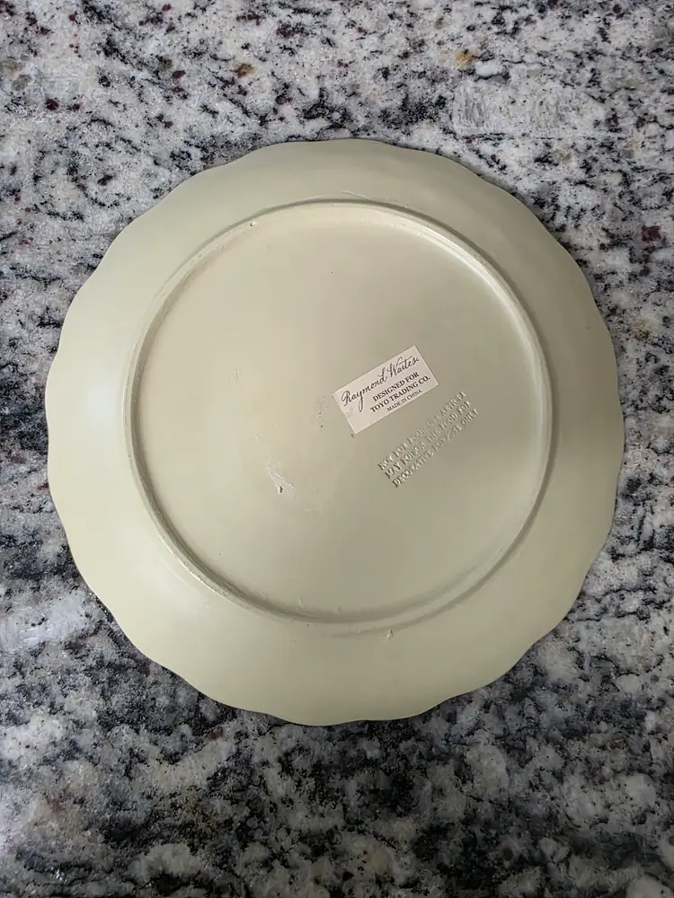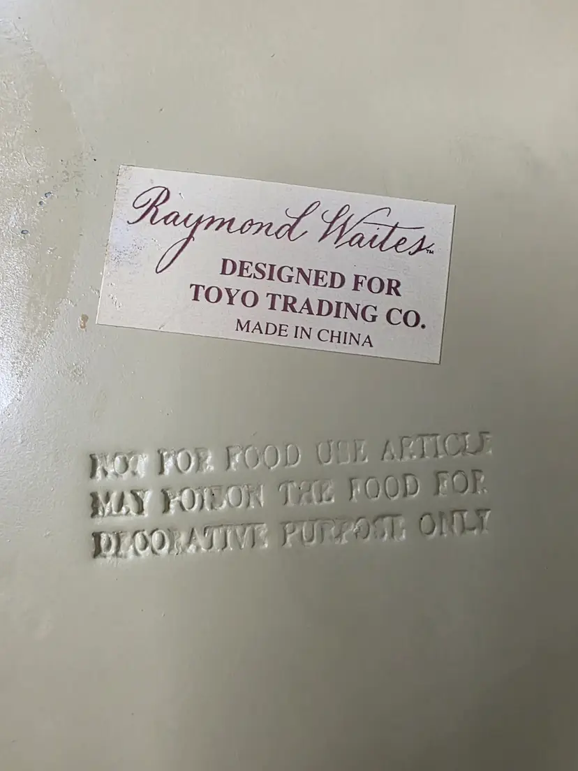 Vintage Raymond Waites Decorative Plate Designed for Toyo Trading Company 10.25". This vintage decorative plate designed by Raymond Waites for Toyo Trading Company is a beautiful addition to any collection. Featuring a unique floral and butterfly theme, this round stoneware ceramic plate measures 10.25 inches in width. The plate is hand-painted and produced in a contemporary original style, making it a stunning piece of art pottery. Perfect for all occasions, this plate is a great conversation starter and a fantastic way to add a touch of elegance to any room. The plate is made in China and features a production technique of pottery. It is handmade and of the highest quality. This plate will be a great addition to any collection or decor. Not for use for food- decoration purposes only. Chip on front of plate as shown in photo. Please pm me with any questions. Beautiful plate very rare.