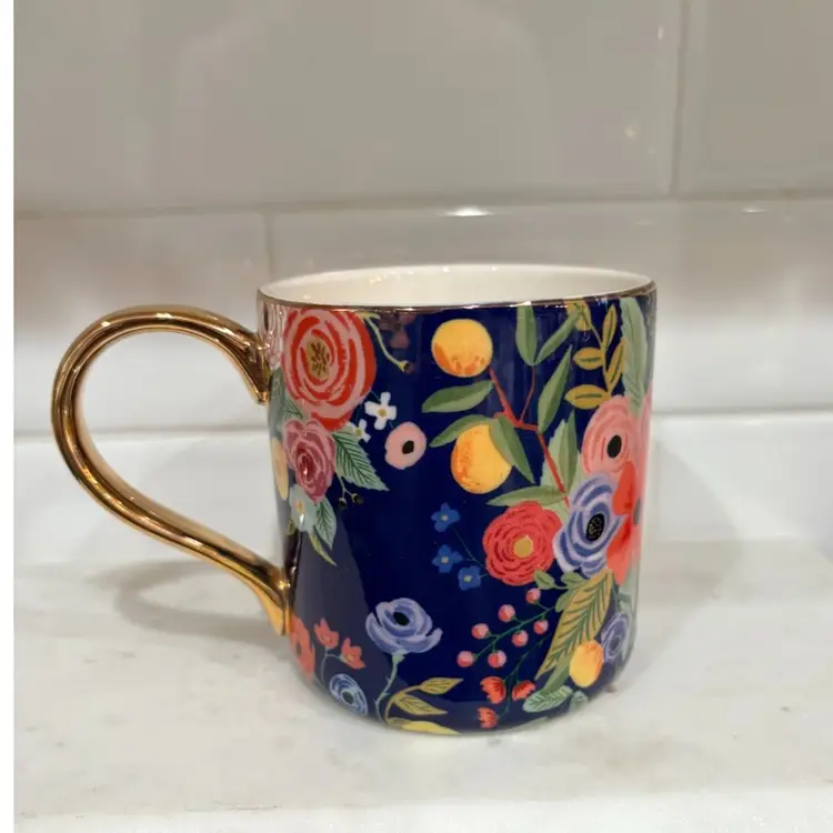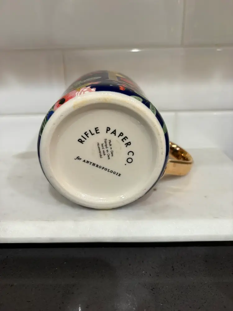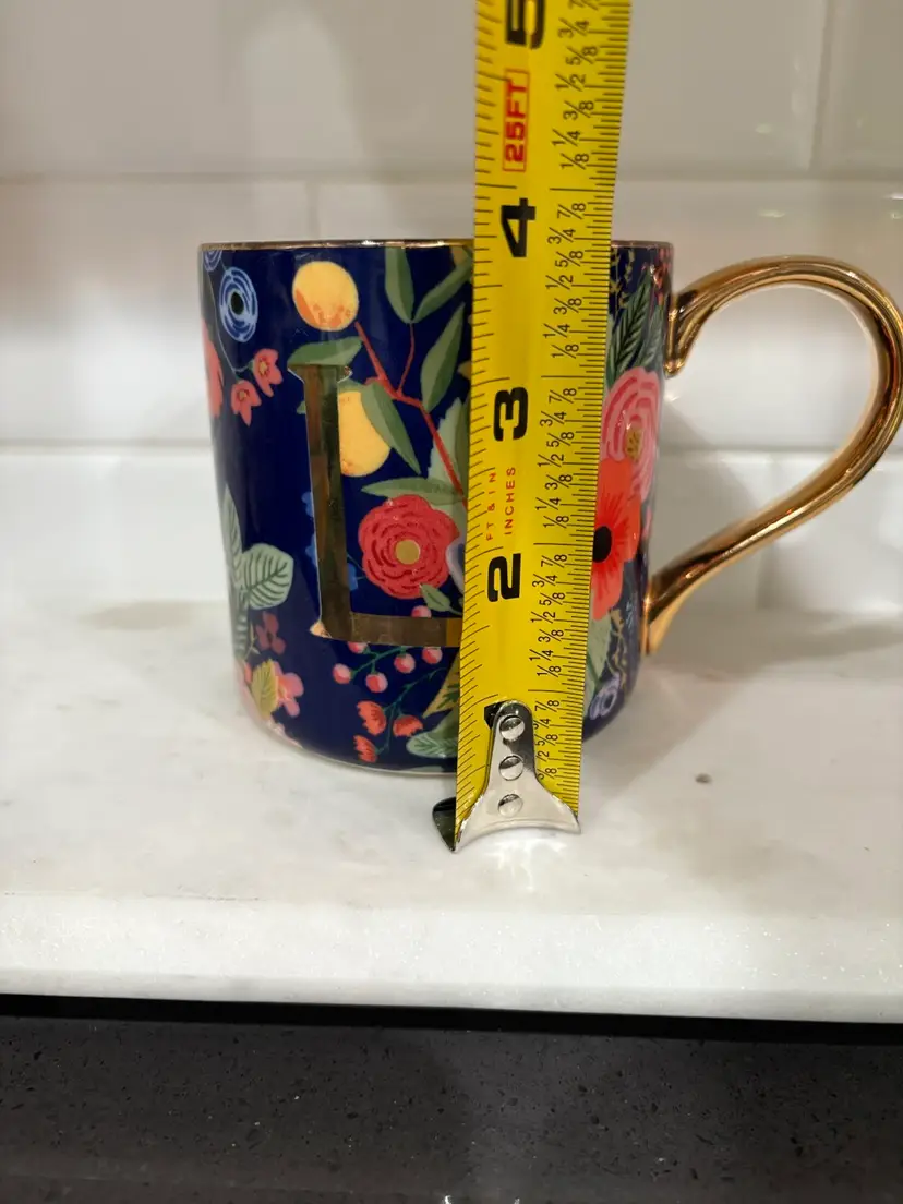 Rifle Paper Co. Anthropologie Coffee Cup Mug Monogram Gold Letter "L”