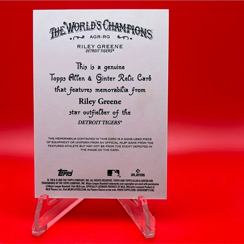 Riley Greene 2025 Topps Allen & Ginter Full Size Relic Detroit Tigers