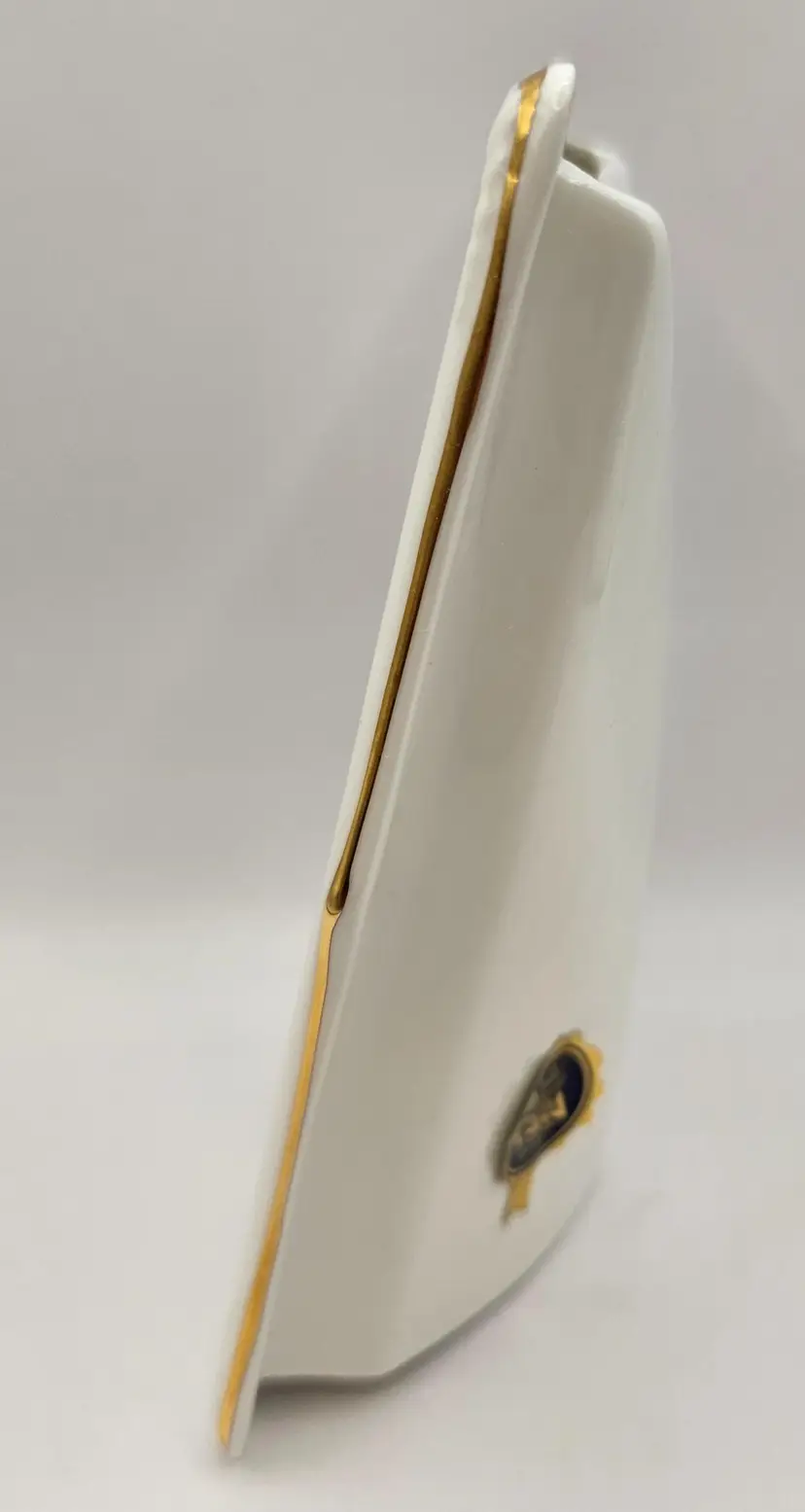 Made in Galway, Ireland. Chipping to corners of glass photo cover but no chips or cracks to frame. 4.5" x 6" but holds 3.5" x 5.25" picture.