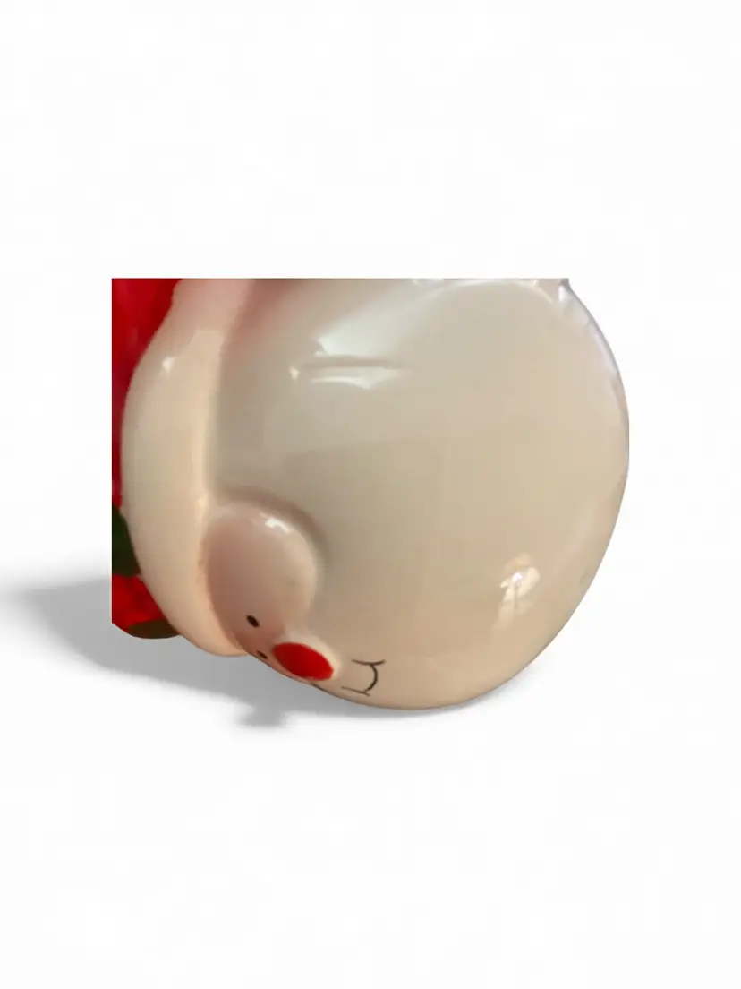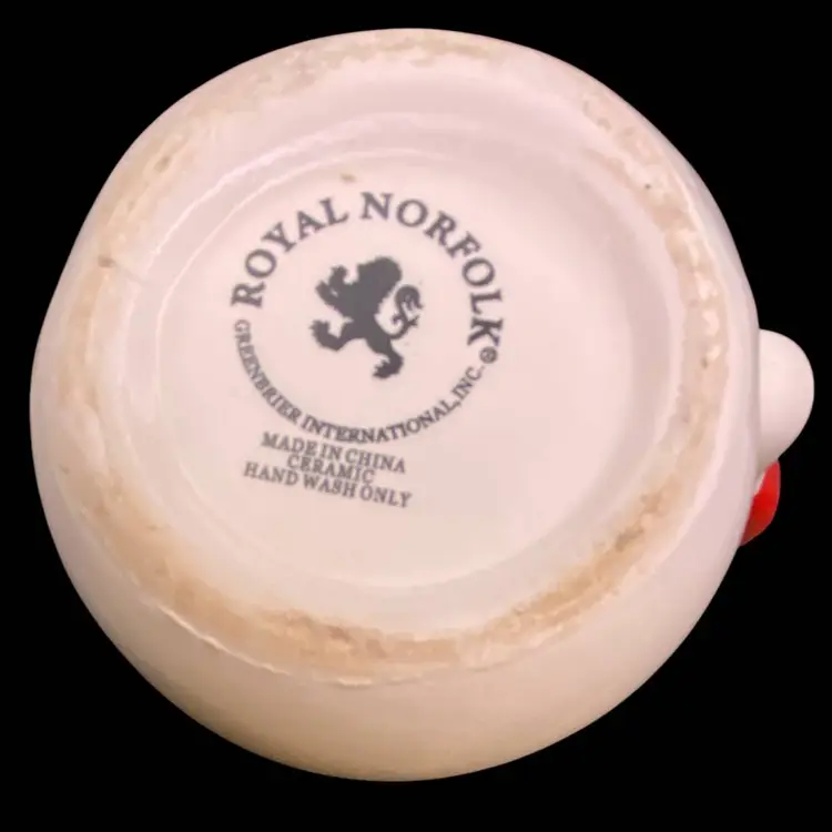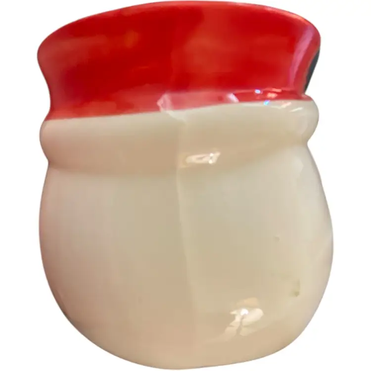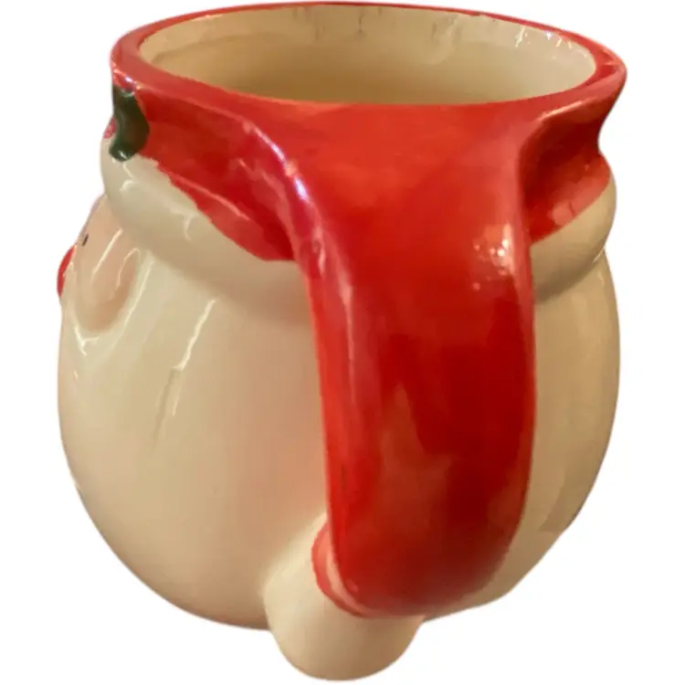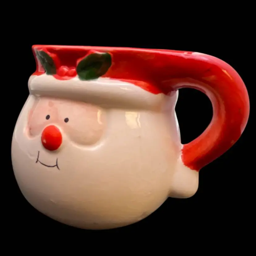 This Santa Claus Face Mug by Royal Norfolk is a festive addition to your Christmas holiday celebrations. The ceramic and porcelain mug features a round shape with a multicolored painted Santa face design, perfect for enjoying hot or cold beverages. At 3 inches in diameter and 3.25 inches tall, this traditional-style mug is decorated for the season and ideal for serving one person. Manufacturers' blemishes include two somewhat deep scratches; additionally, the line where the mold pour was not well sanded shows. See the last pictures. There is crazing on the inside. $2 per item extra postage Reimburse for postage overage.