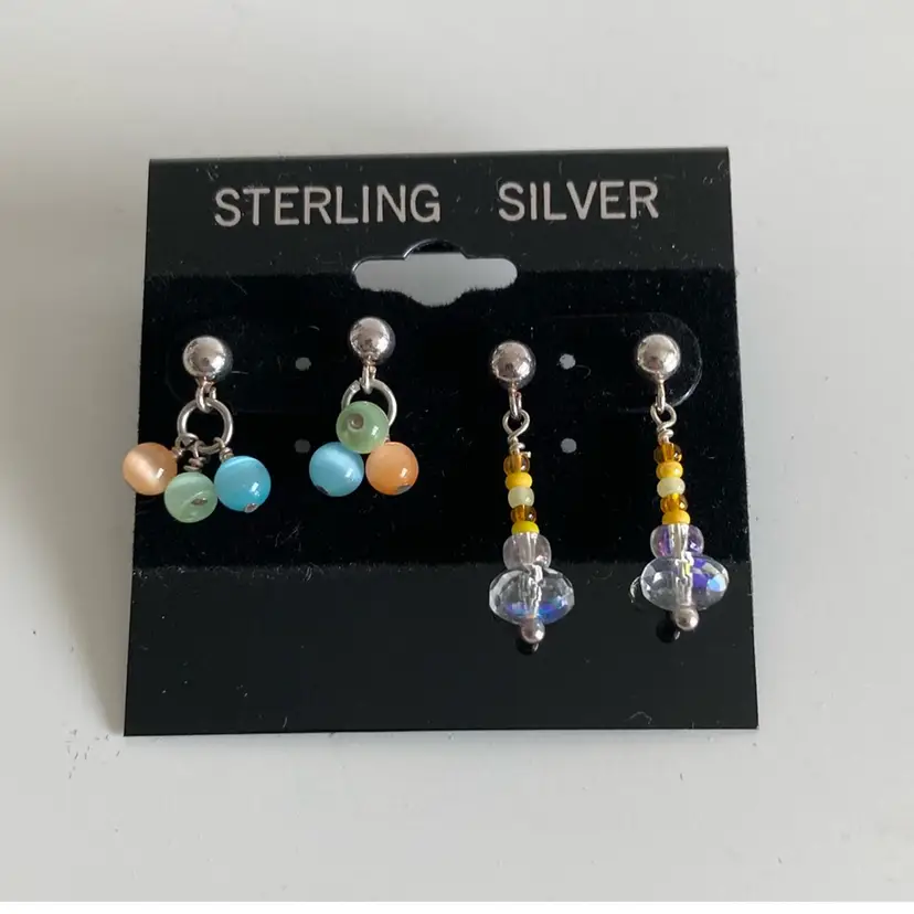 Set of 2 vintage sterling silver and Czech glass bead earring sets. All are marked 925. The drop on the earrings is 5/8” and 1”.