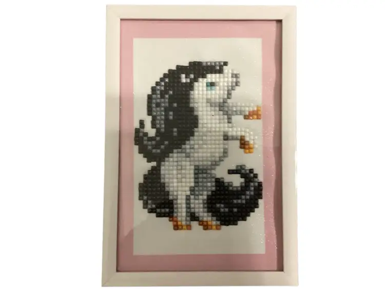 This is an amazing set of 6 finished and framed Diamond art pictures measuring 4” 6” each. These have been made by my grand daughter. This set is in excellent condition