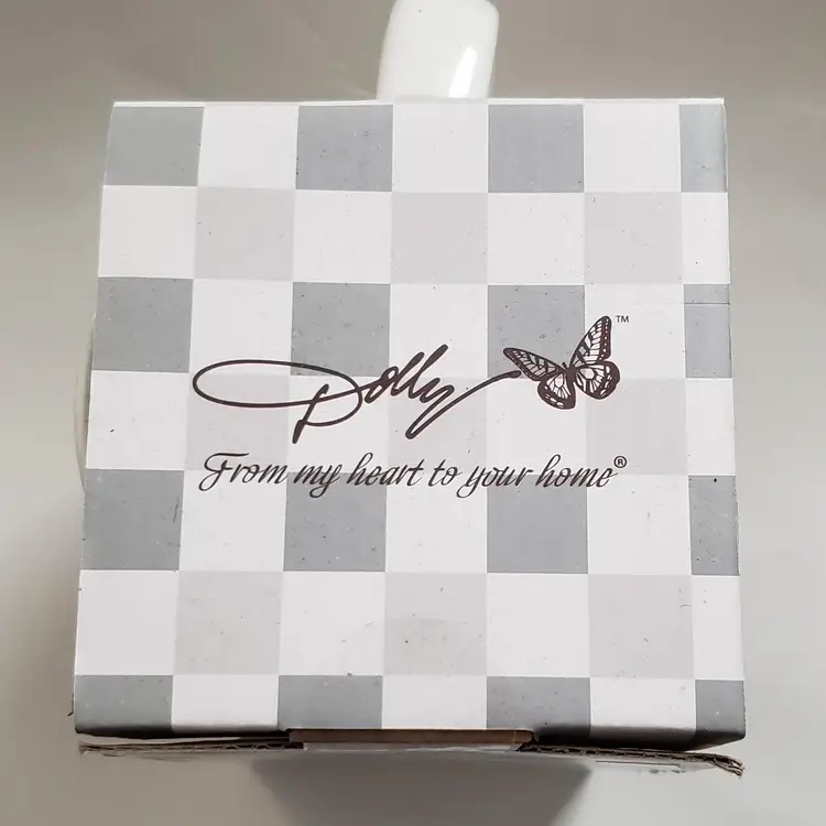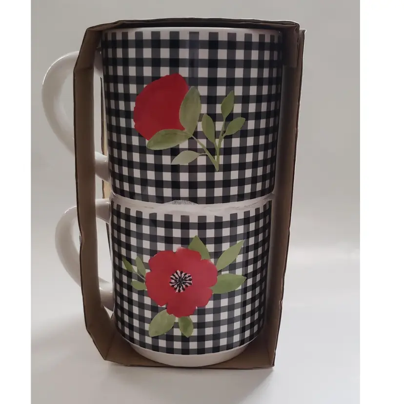 Made by Tabletops Unlimited, designed by Dolly. Still in original packaging, very cute gingham design with poppies on stoneware. Great condition.