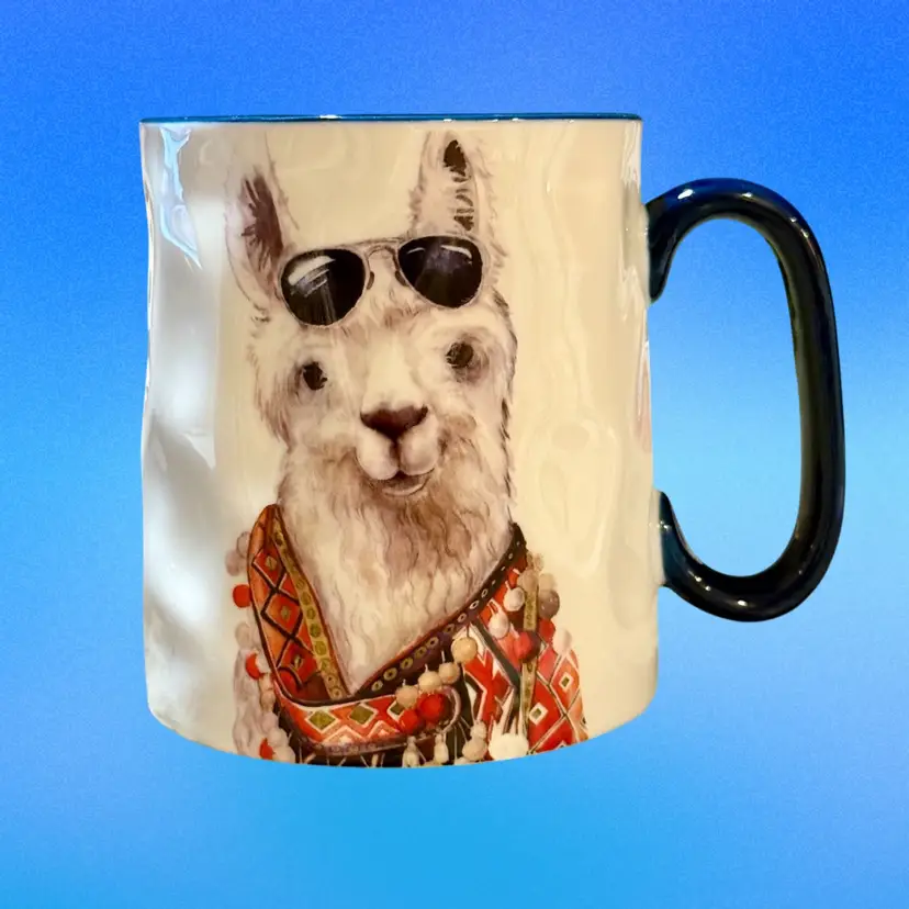 Signature Housewares Hipster Llama Glasses Scarf Ceramic 14oz Coffee Mug **PLEASE READ**