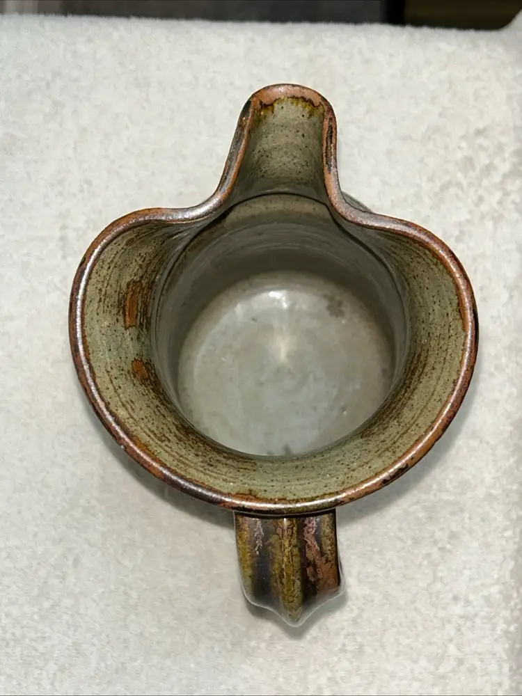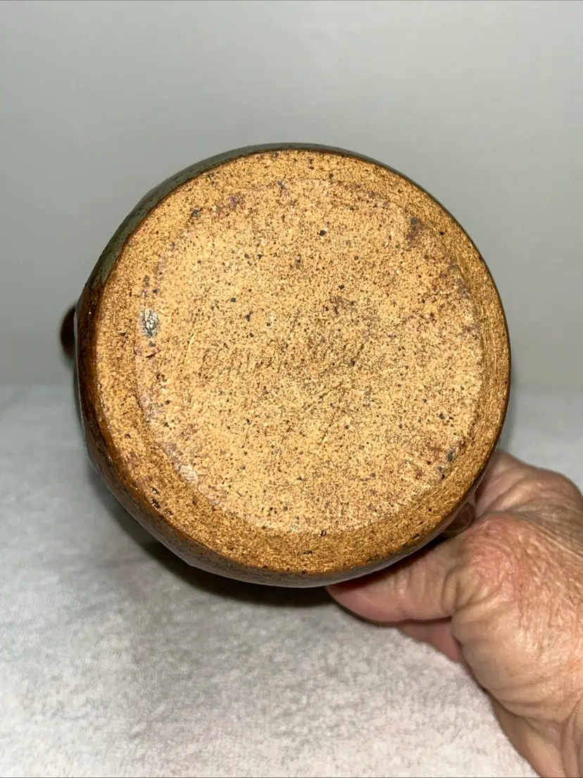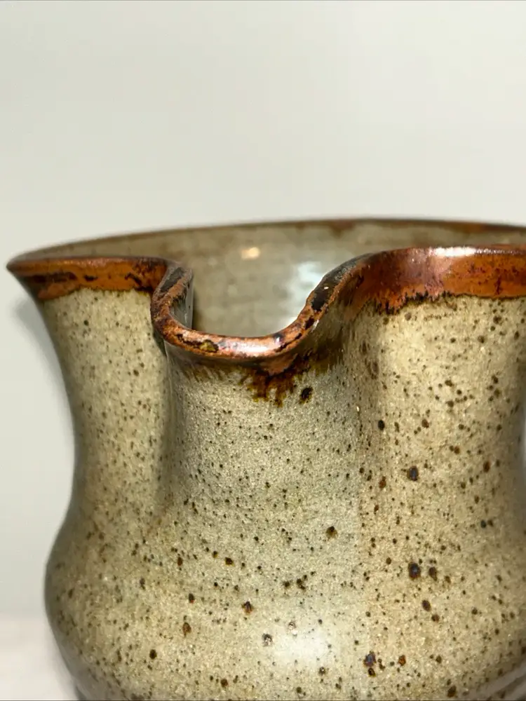 Signed Stoneware Pottery Pitcher Speckled Glaze Earth Tone Colors Mary Humphrey