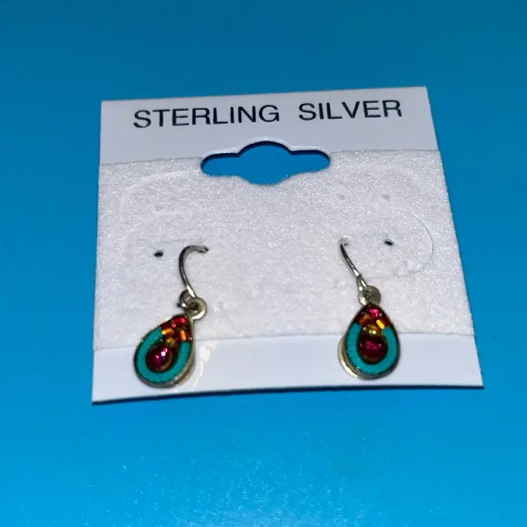 Silver 925 Pierced Earrings with Rubies 1” Long