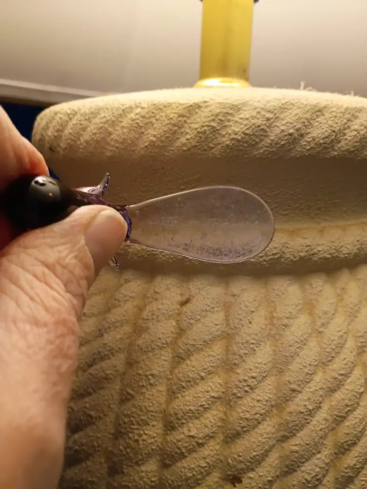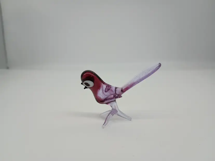 Small Lamp Work Art Glass Bird Figurine Lavender & Deep Amethyst. Neodymium ? This is 3 inches long 2.25 inches tall and just over 1 inch wide. This is preowned, No chips cracks or flea bites. This does color shift between LED and Incandescent lighting. I think it's partially neodymium glass at least tail and legs. It changes to a pinkish color in incandescent light and more of a blue purple in LED. . Excellent condition. Ships USPS domestically and UPS/ USPS International Shipping globally