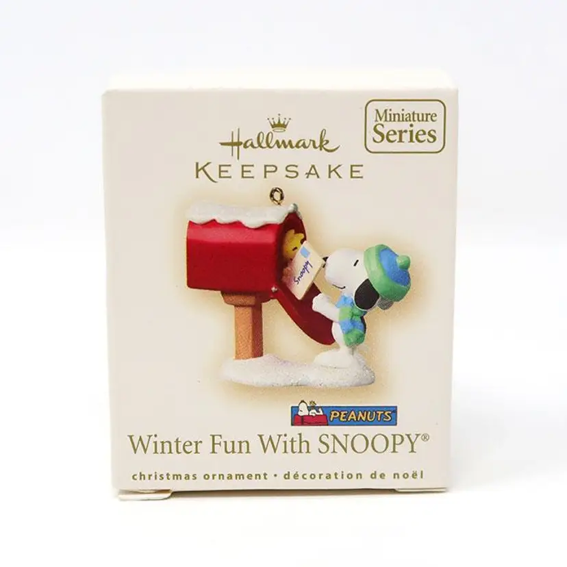 Celebrate the holidays with this charming Snoopy & Woodstock Mailbox Miniature Ornament from Hallmark in 2007. Featuring Snoopy in a cozy winter hat and scarf, checking his mail with Woodstock, this piece is perfect for adding a touch of Peanuts magic to your Christmas tree. A delightful collectible for any Peanuts fan. In very good condition with minor signs of use.