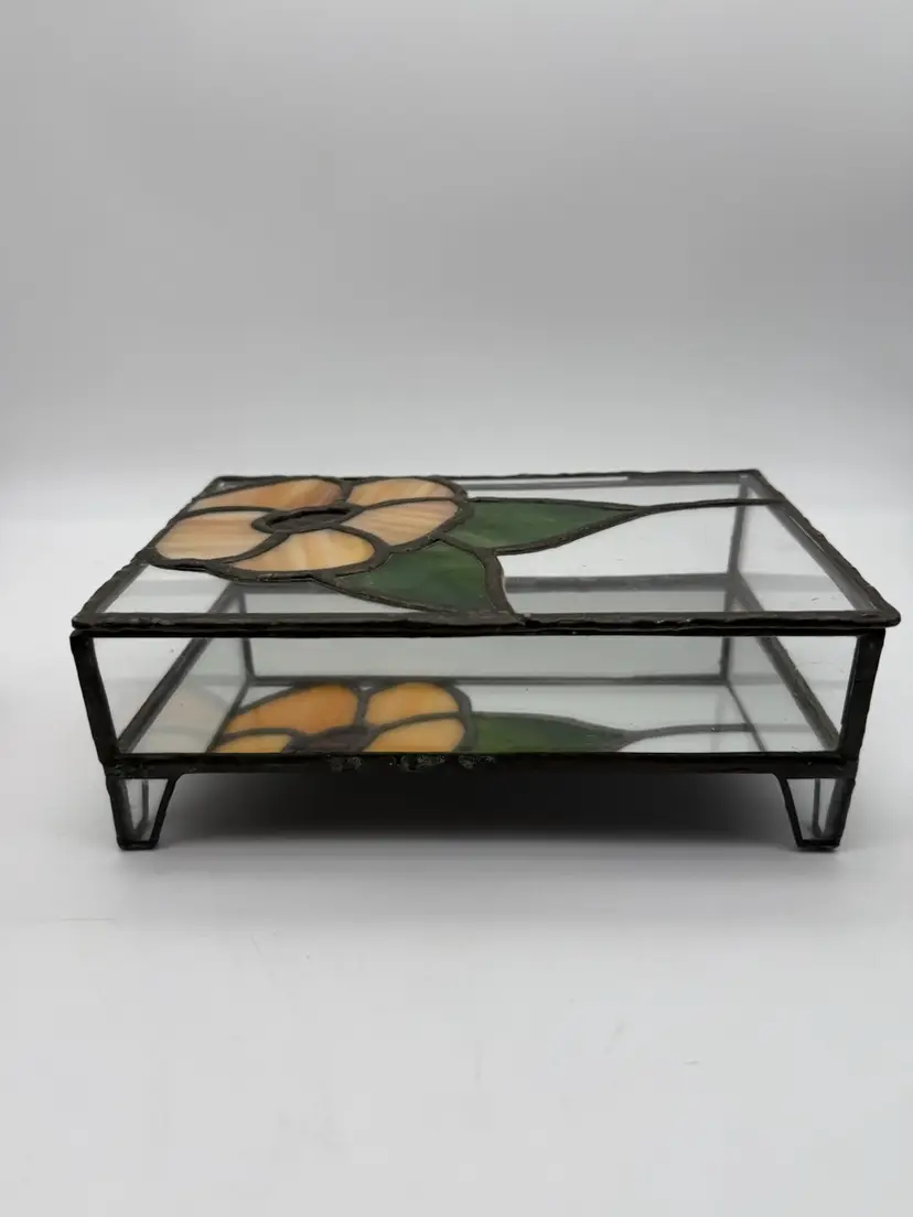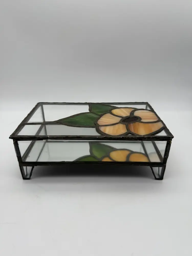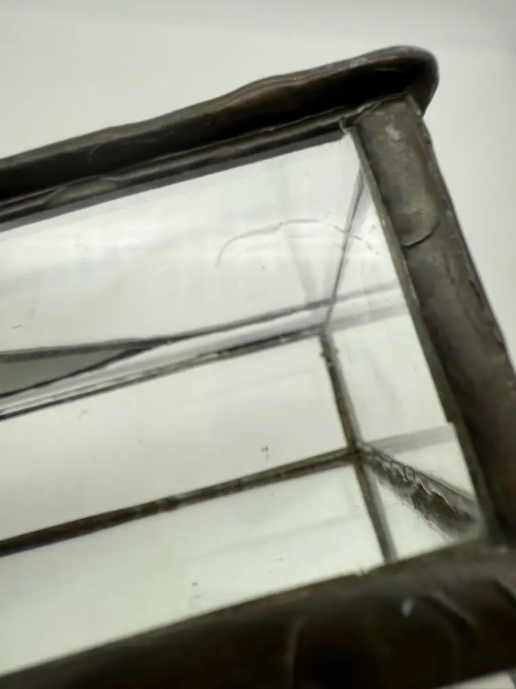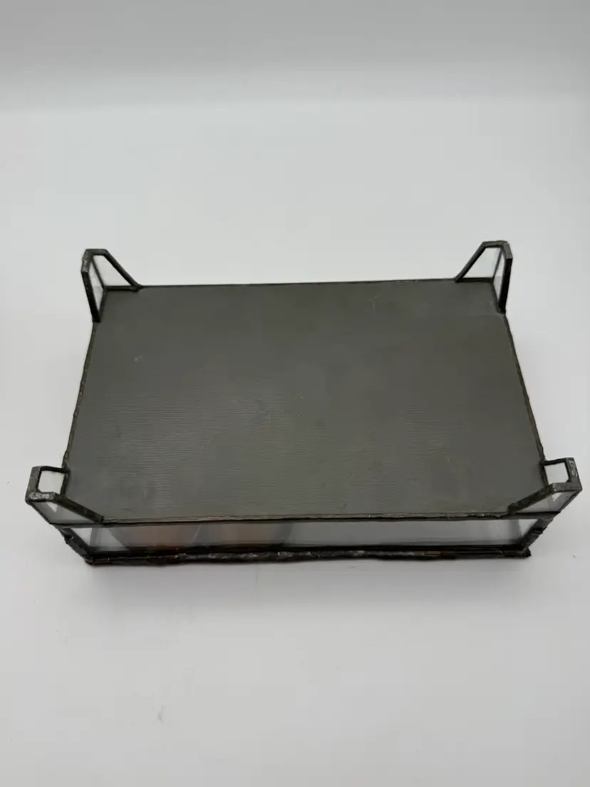 Measures 8” long, 5” deep, 2.75” tall Two minor flaws to glass shown in photos Unmarked