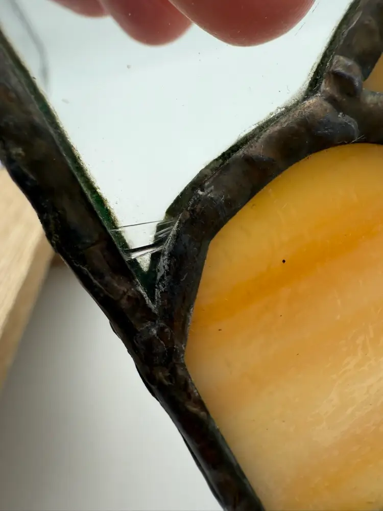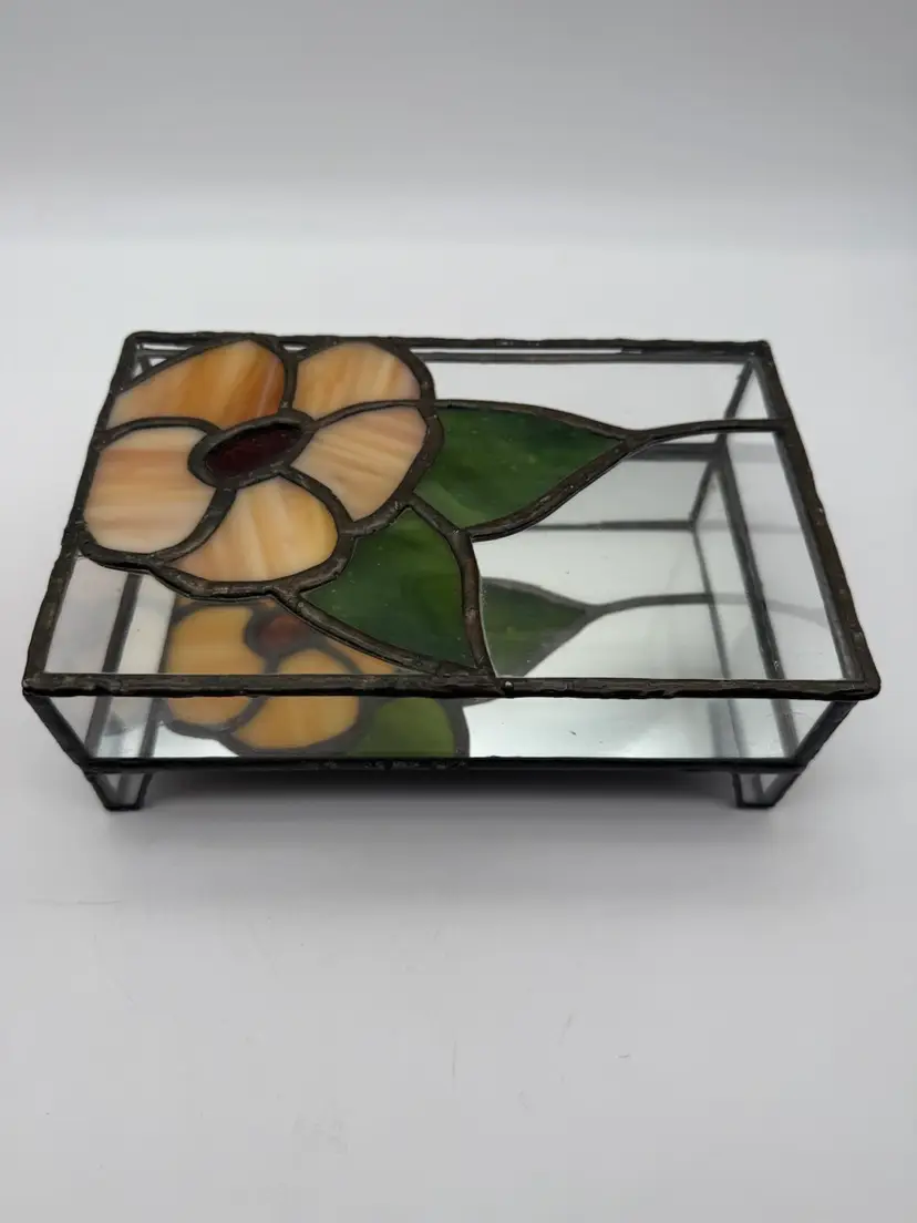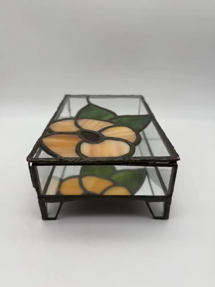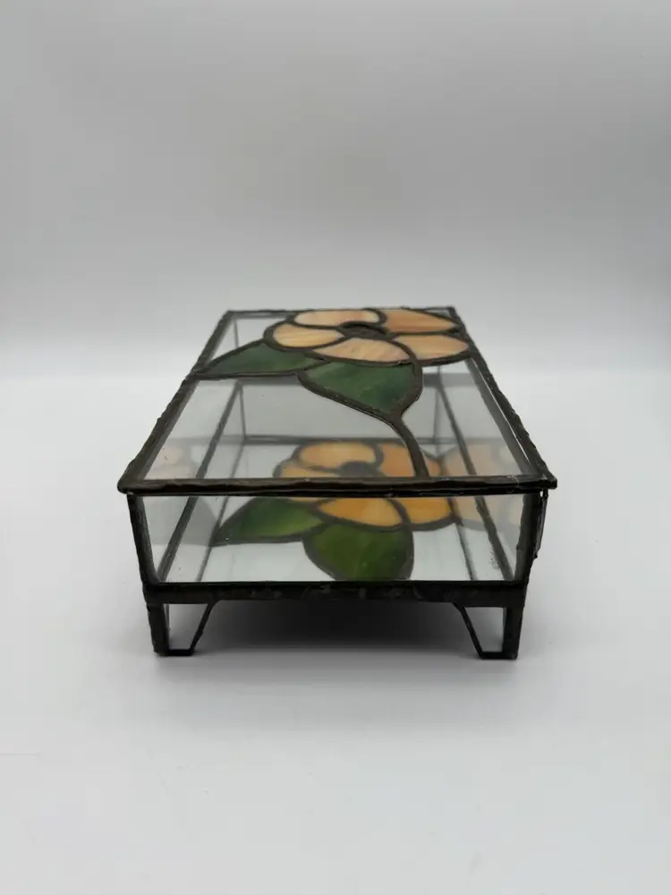 Measures 8” long, 5” deep, 2.75” tall Two minor flaws to glass shown in photos Unmarked