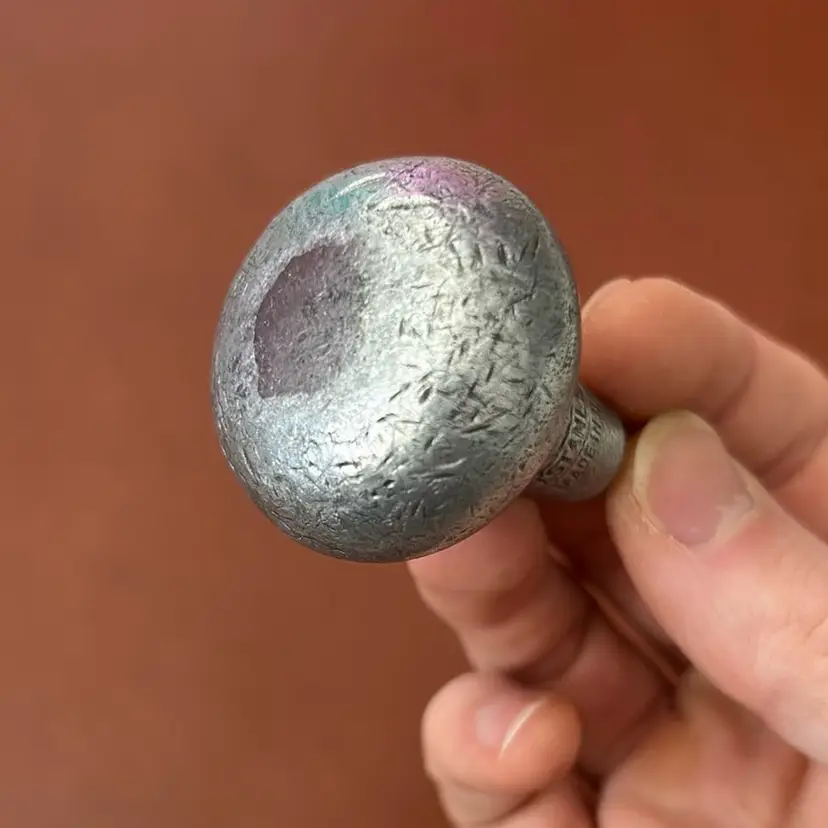 I cannot find another awl exactly like this online… it’s a Stanley. The handle is heavy and definitely metallic but I’m not sure if it’s aluminum or something else. There’s a bunch of tooling marks from the handle being struck. Your guess is as good as mine. It’s very cool looking and unique.