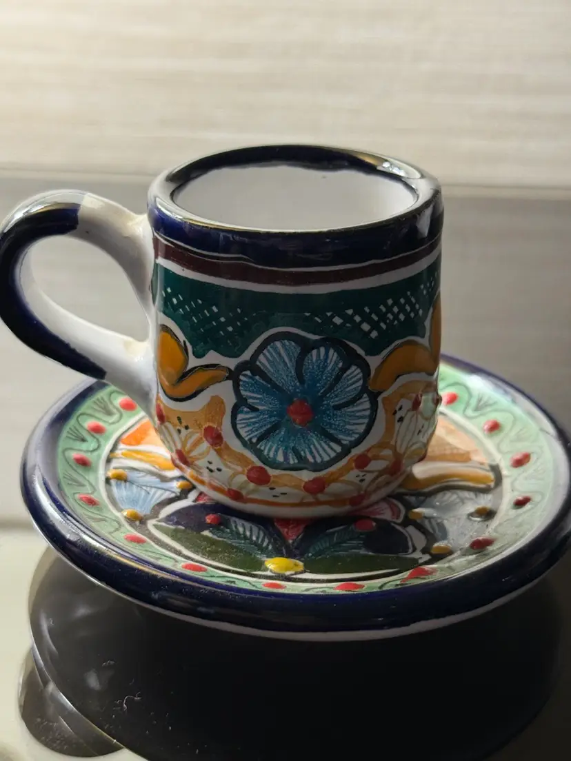 Adorable!!! This cute set is colorful, fun and perfect for that morning cafecito!