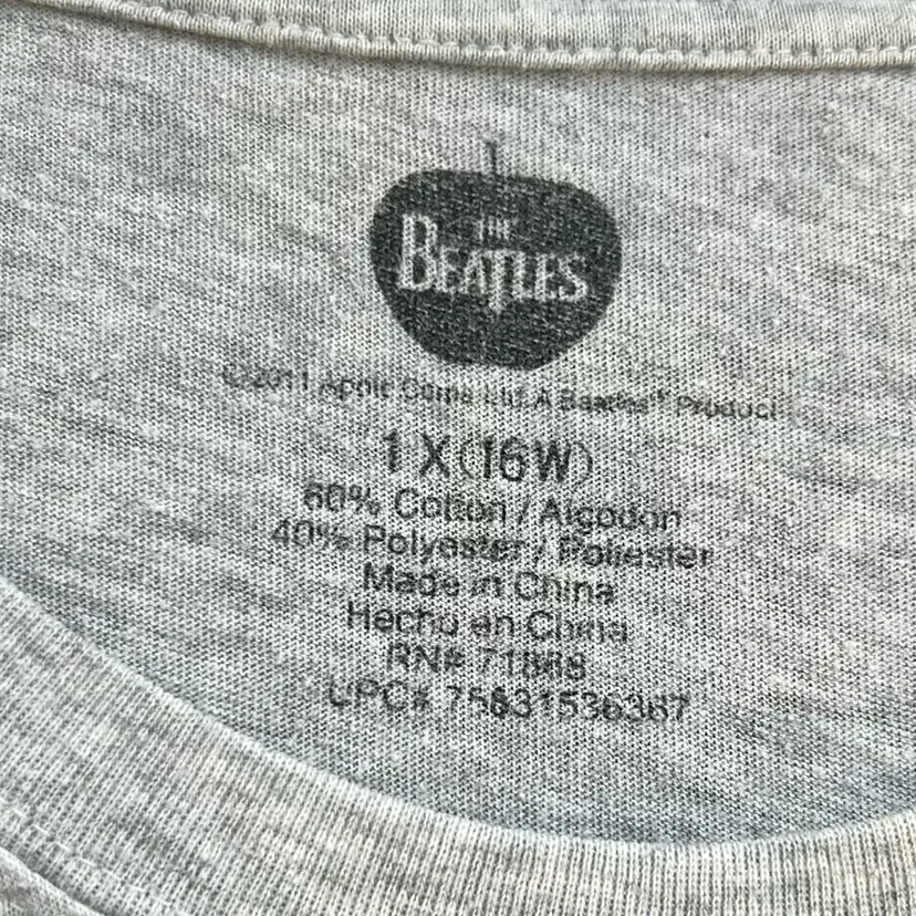 The Beatles light gray T-shirt. Size 1X Pit to pit 21 inches length is 24 inches
