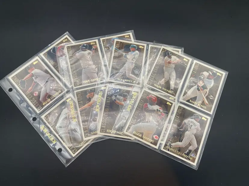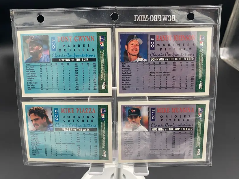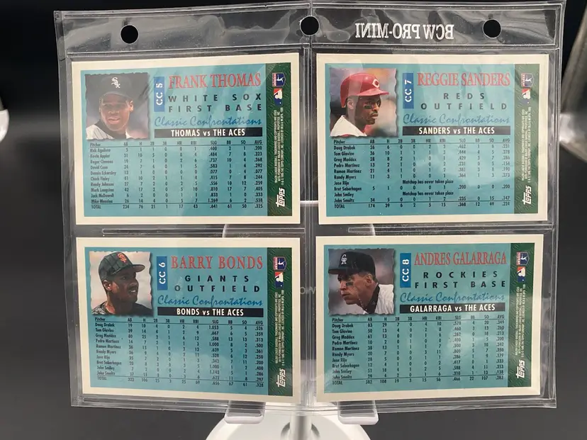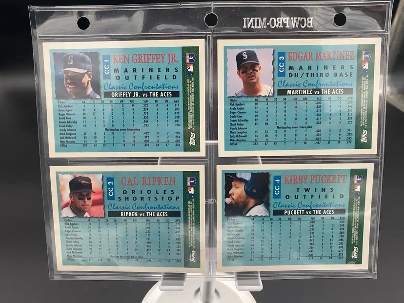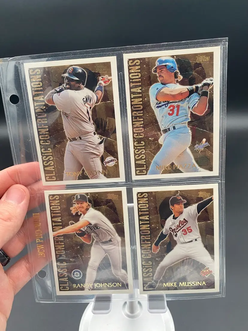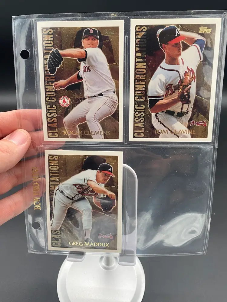 You are purchasing one Complete 15 Card Insert Set of MLB Classic Confrontations Cards by Topps and their 1996 Line. See images for all of the Cards included in this Listing. These Cards are in great condition with no creasing, staining or ripping.