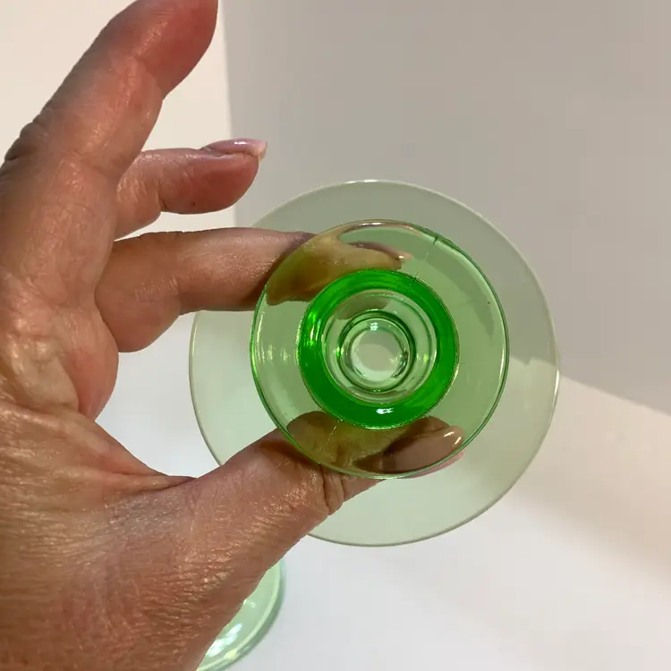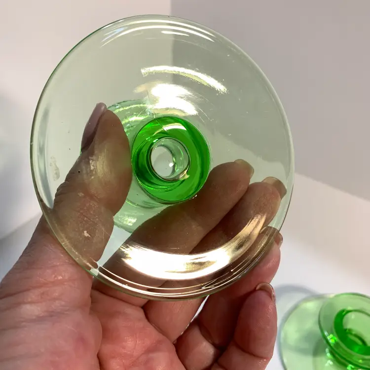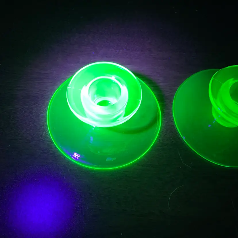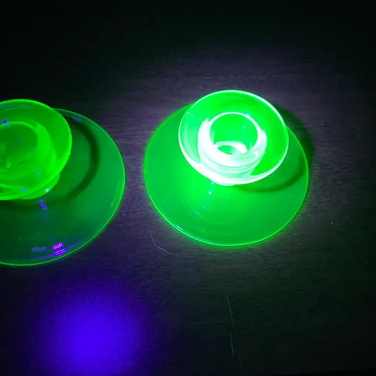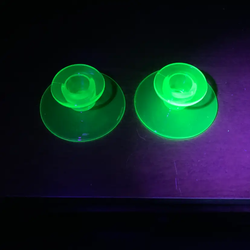 These really glow! No chips or cracks. Each one measures 3 1/2 inches wide and 1 1/2 inches tall. Weighs 7 ounces. If the actual postage ends up being less than what you paid, you will be refunded for anything over one dollar.
