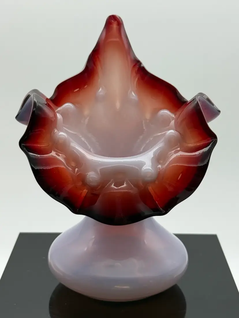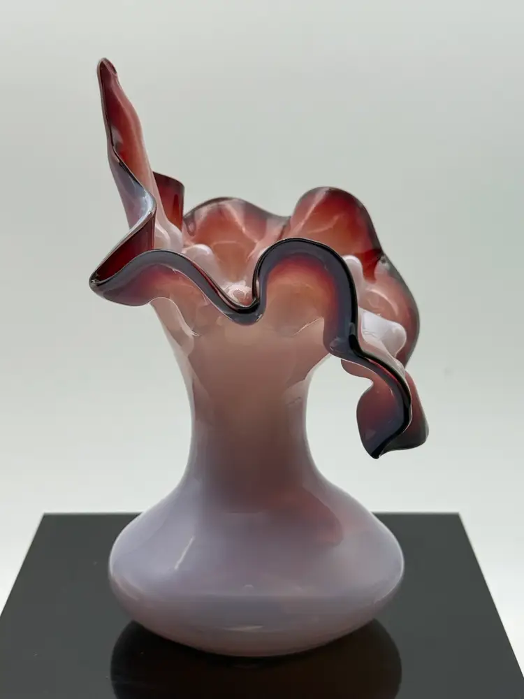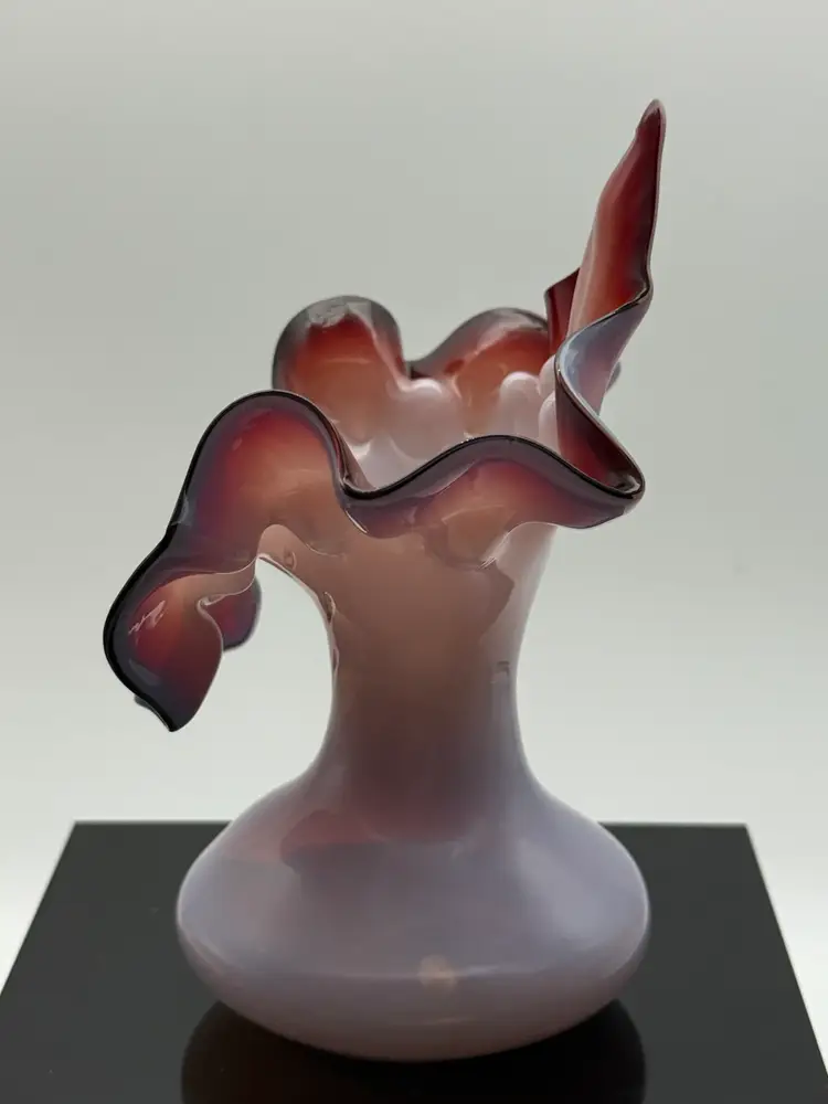 Victorian Art Glass Lavender and Ox Blood Jack In The Pulpit Vase