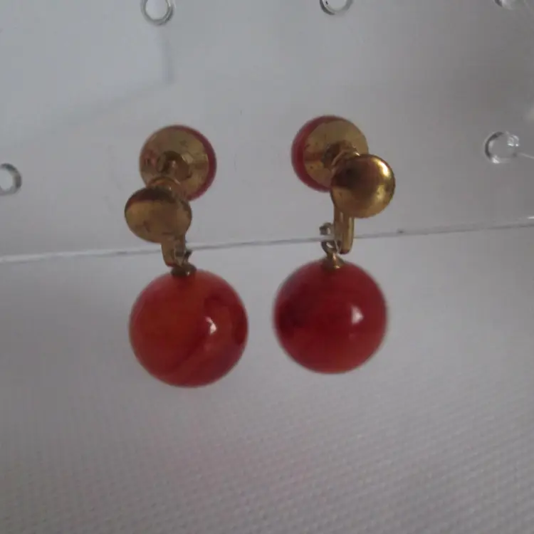 Vintage amber Lucite ball and chain dangle screw back earrings