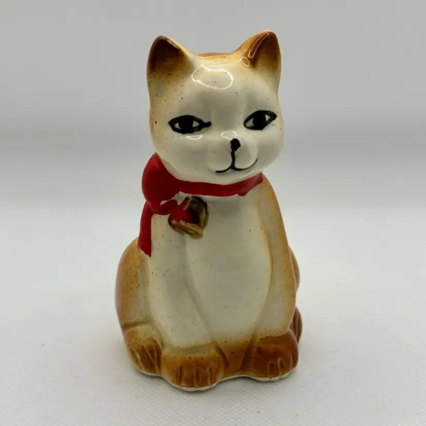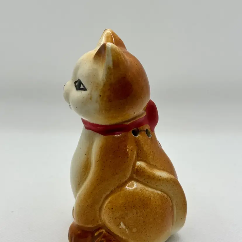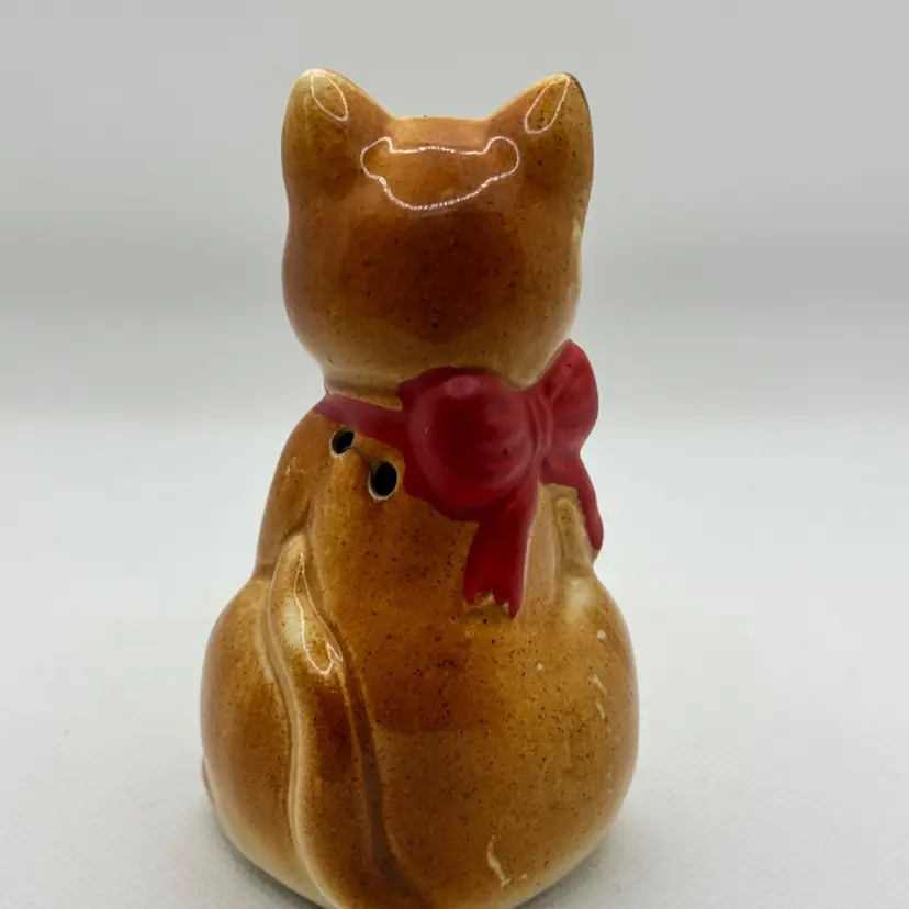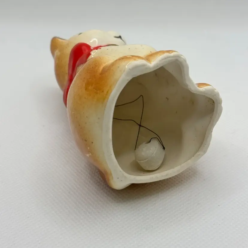 Vintage cat kitten bell orange tabby, made in Taiwan. No chips or cracks, few paint fades (see pics). Measures 2.25x3.75x2.25. Weighs 4oz.
