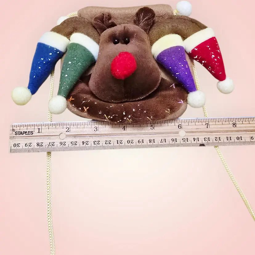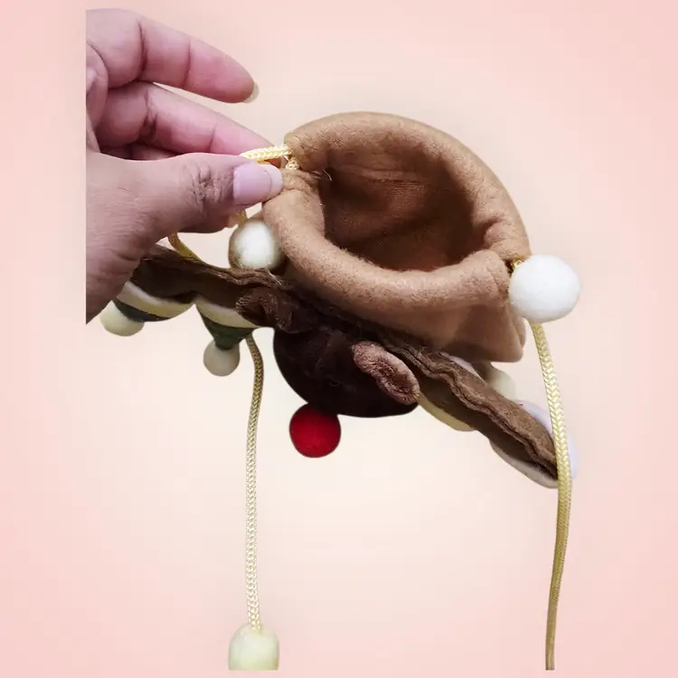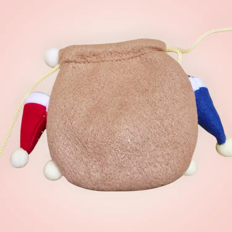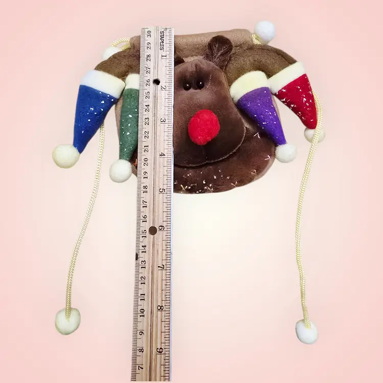 Vintage Christmas Moose Draw-String Candy/Gift Polyester Cloth Bag 7 x 5"