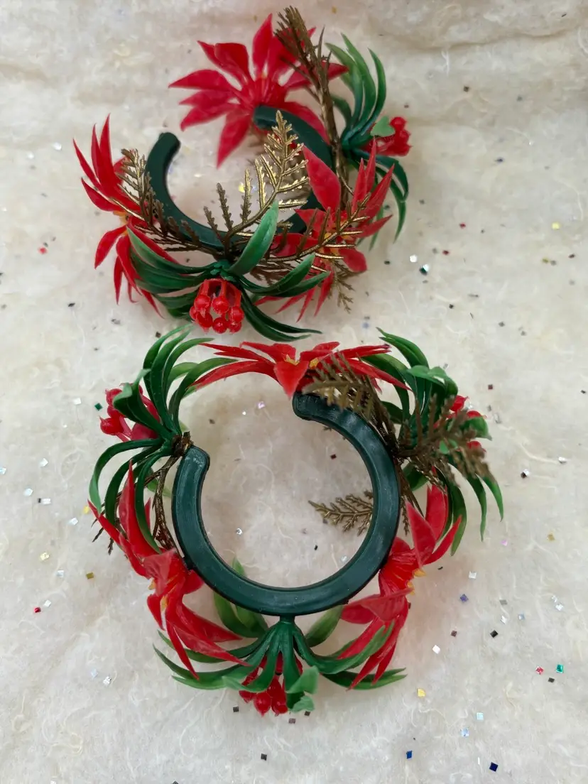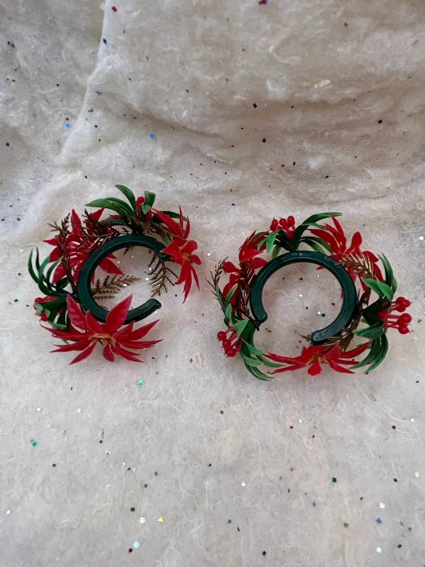 Set of 2 Vintage plastic poinsettia candle rings Vintage..so not perfect, but still look great. 2” diameter