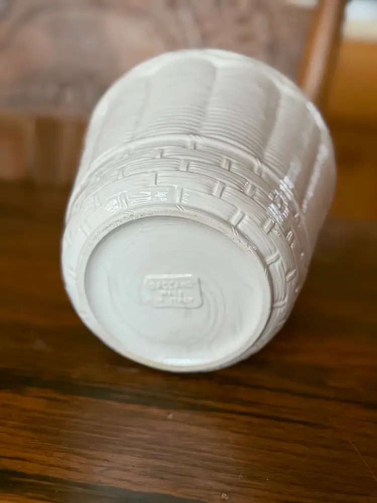 🏷 DETAILS Maker: Classico Italy Material: Glazed ceramic Design: Basket weave with raised strawberry appliqué Color: White with red and green hand-painted accents Era: 1960s–1980s Origin: Made in Italy