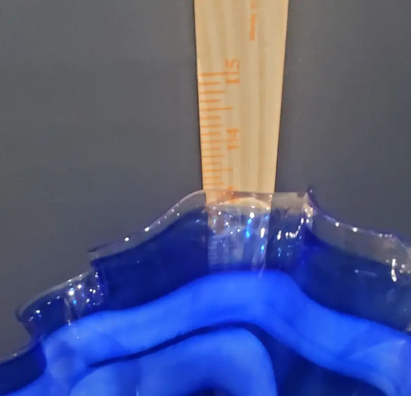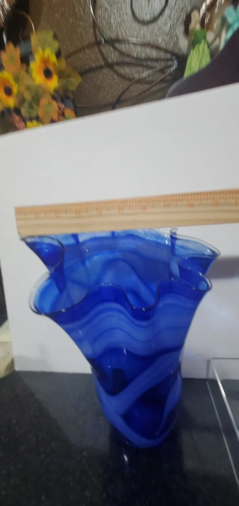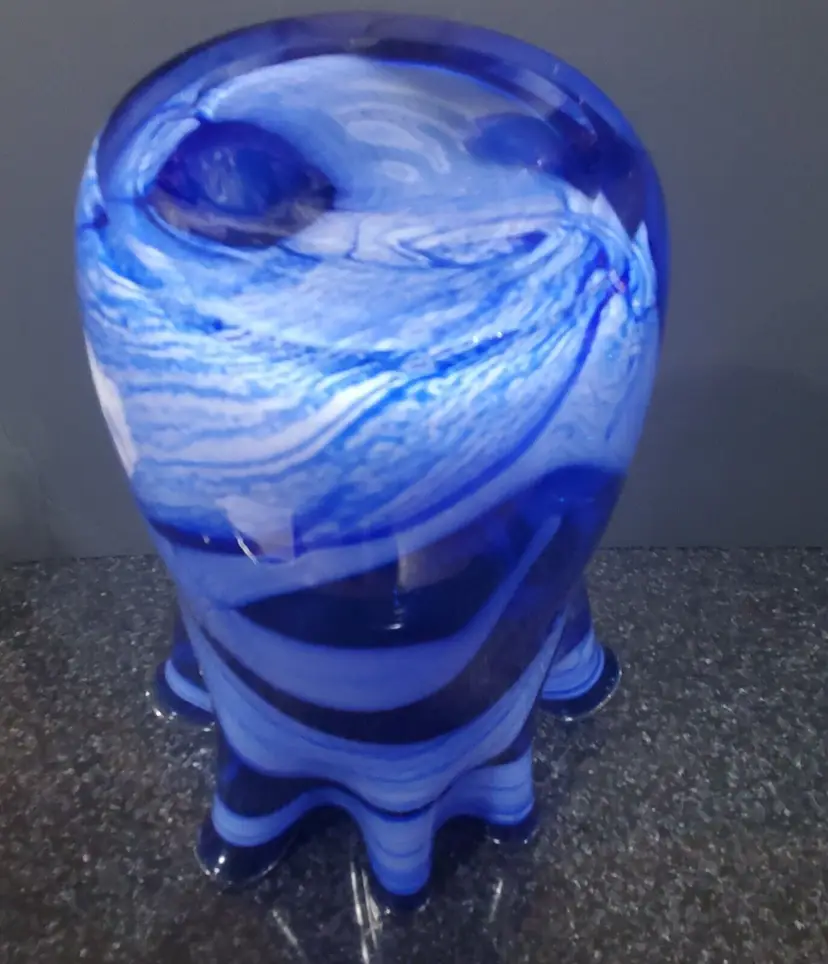 Vintage Cobalt Blue White Swirl Handkerchief Handblown Art Glass Vase 13" Tall