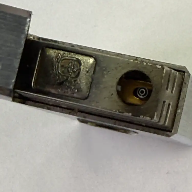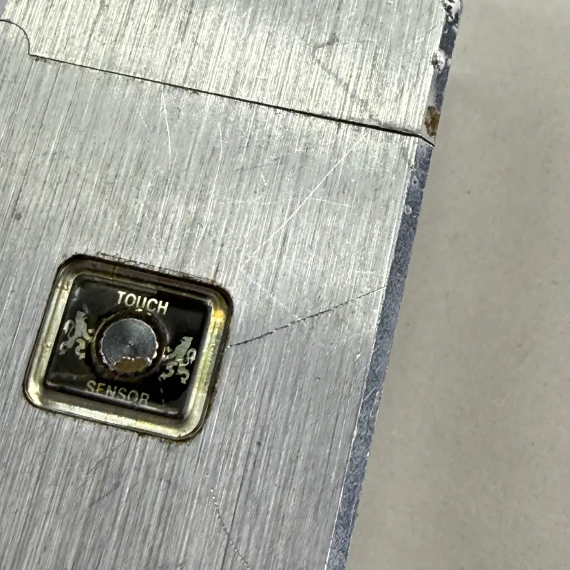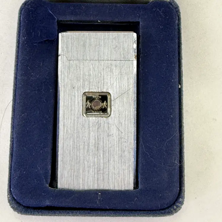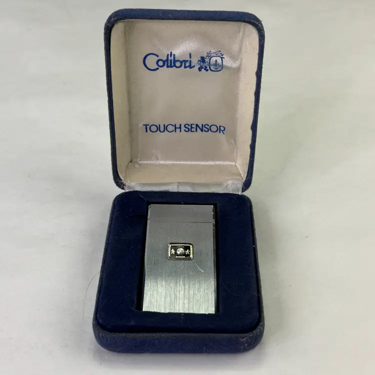 A vintage Colibri lighter with touch sensor technology presented in its original case. Non-functional, ideal for collectors or restoration projects.