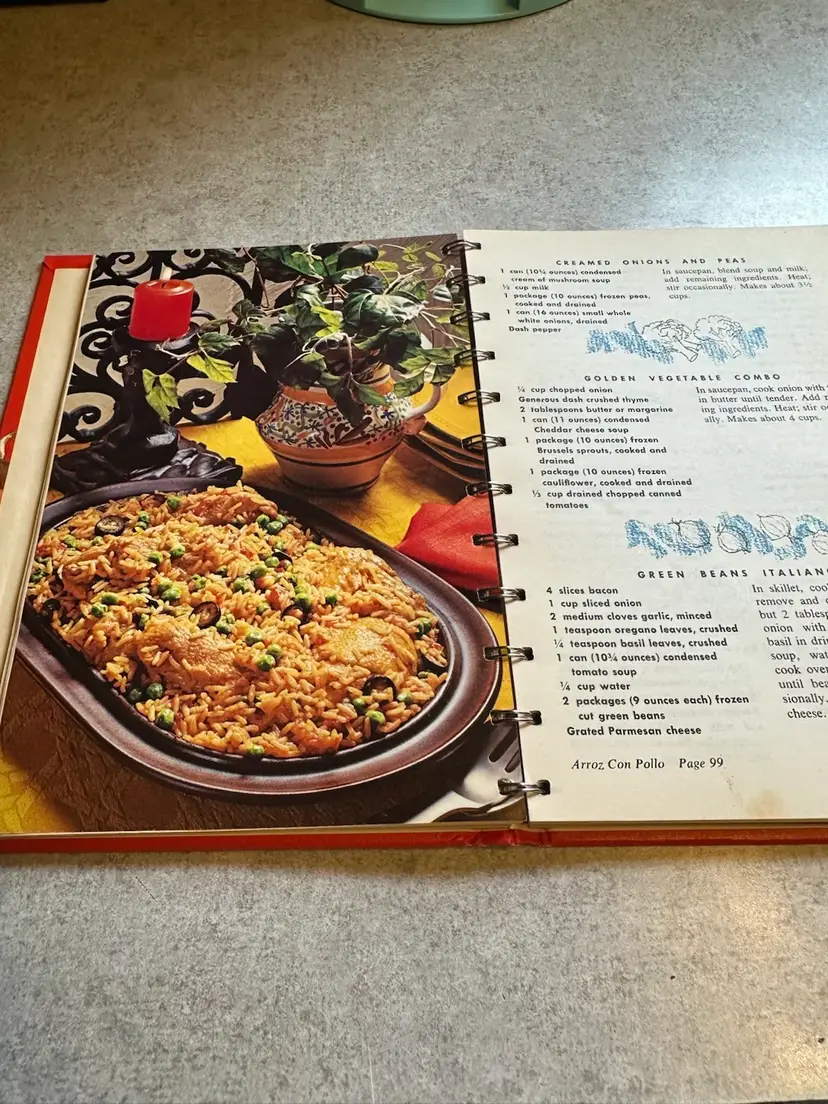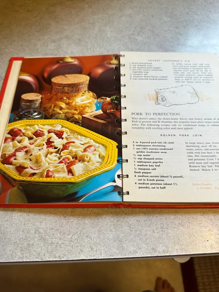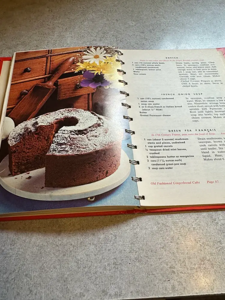 This cookbook was published by the Campbell Soup Company in the 1970s as part of their marketing strategy to promote the versatility of their canned soup products. The spiral-bound edition features 608 recipes including skillet dishes, casseroles, stews, sauces, gravies, dips, and garnishes, all incorporating Campbell's soup as a key ingredient. Great looking recipes.