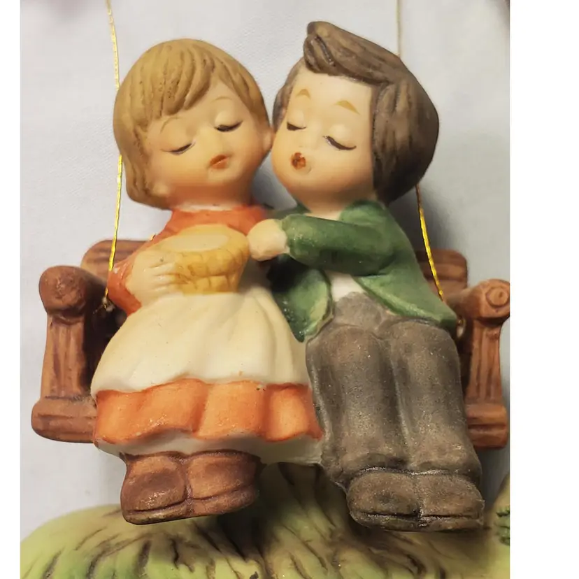 Vintage ENESCO Cuddling Couple On Swing E-3011 Bisque Porcelain