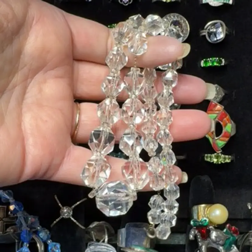 Vintage Faceted Crystal Necklace on Sterling Chain 16”