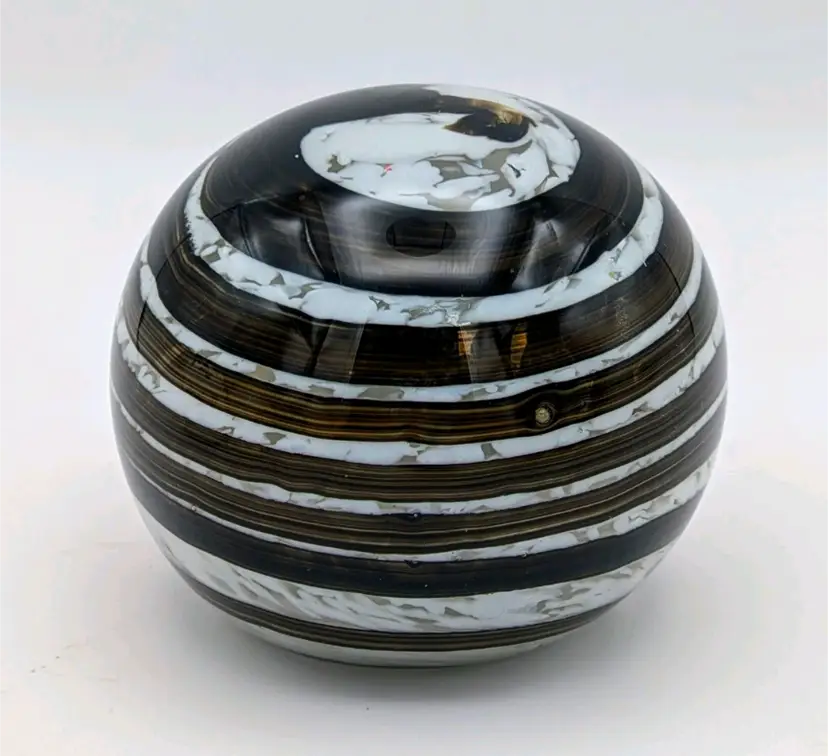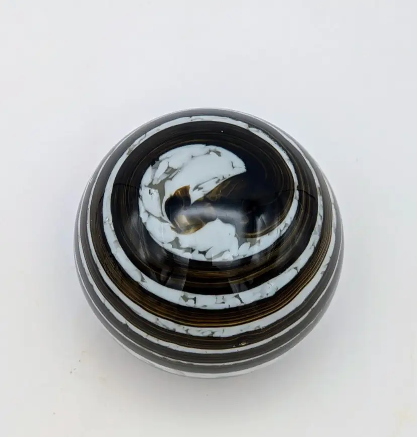 Lovely 3.5 inch brown and white swirled paperweight. Very good vintage condition.