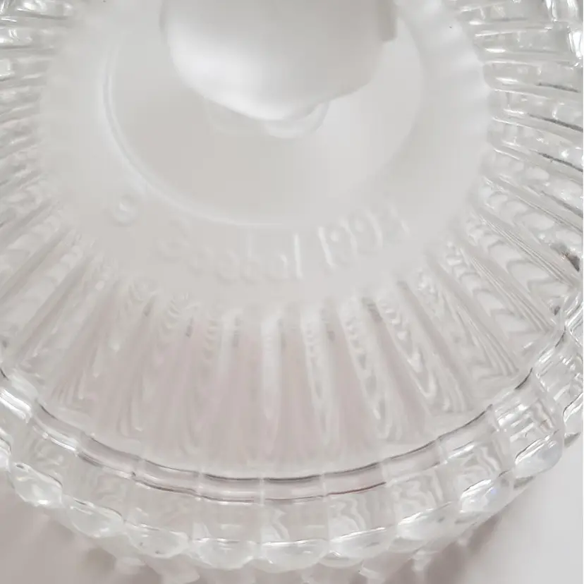 Very cute 24% full-lead crystal dish made by Goebel and signed MI Hummel for Avon. Dish is clear crystal and the little girl on top is frosted. Comes in the original box with the original certificate of authenticity. No chips, cracks, or flaws.