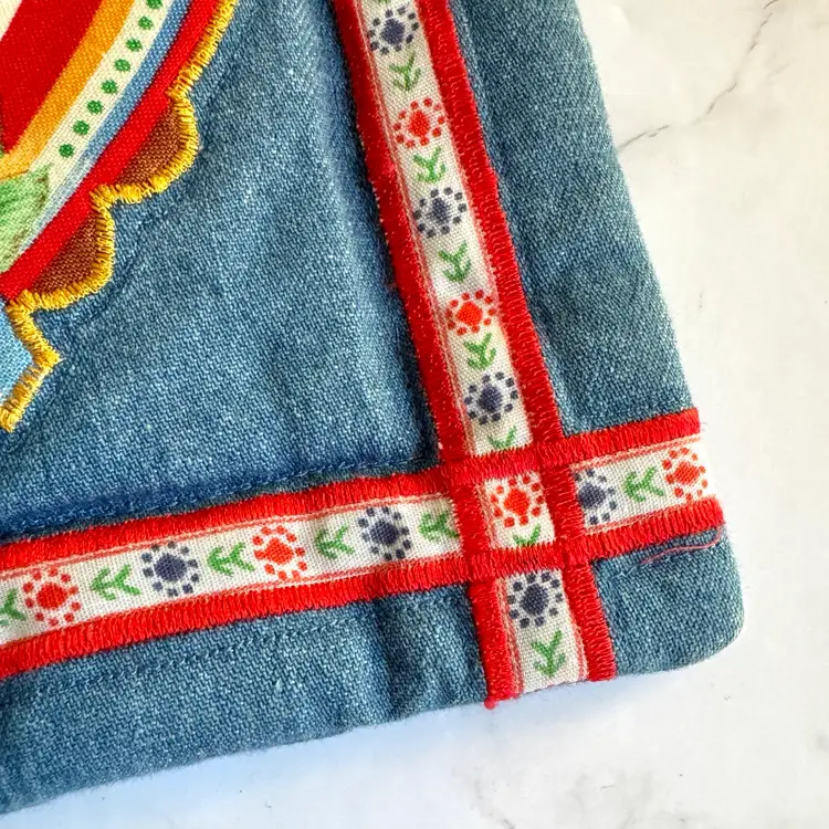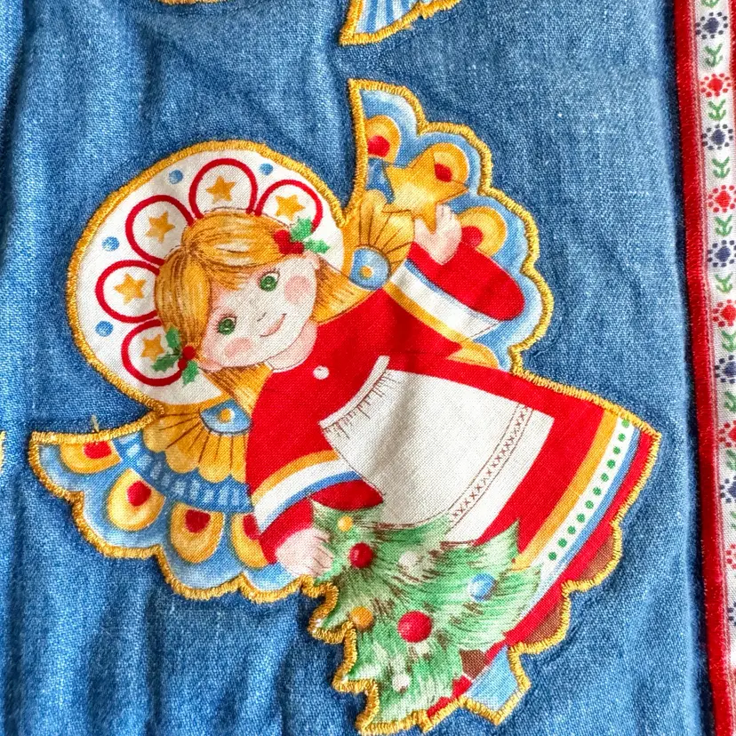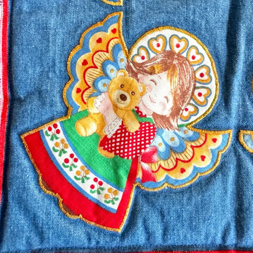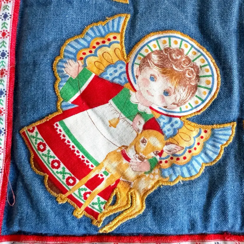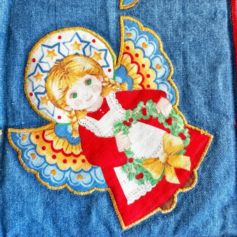 Vintage Handmade Denim Christmas Angel Throw Pillow Cover 12” Pillow