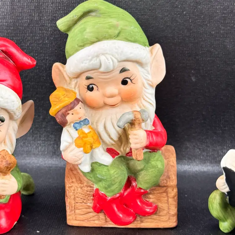 Vintage HOMCO Ceramic Christmas Elves Santa’s Helpers Figurines