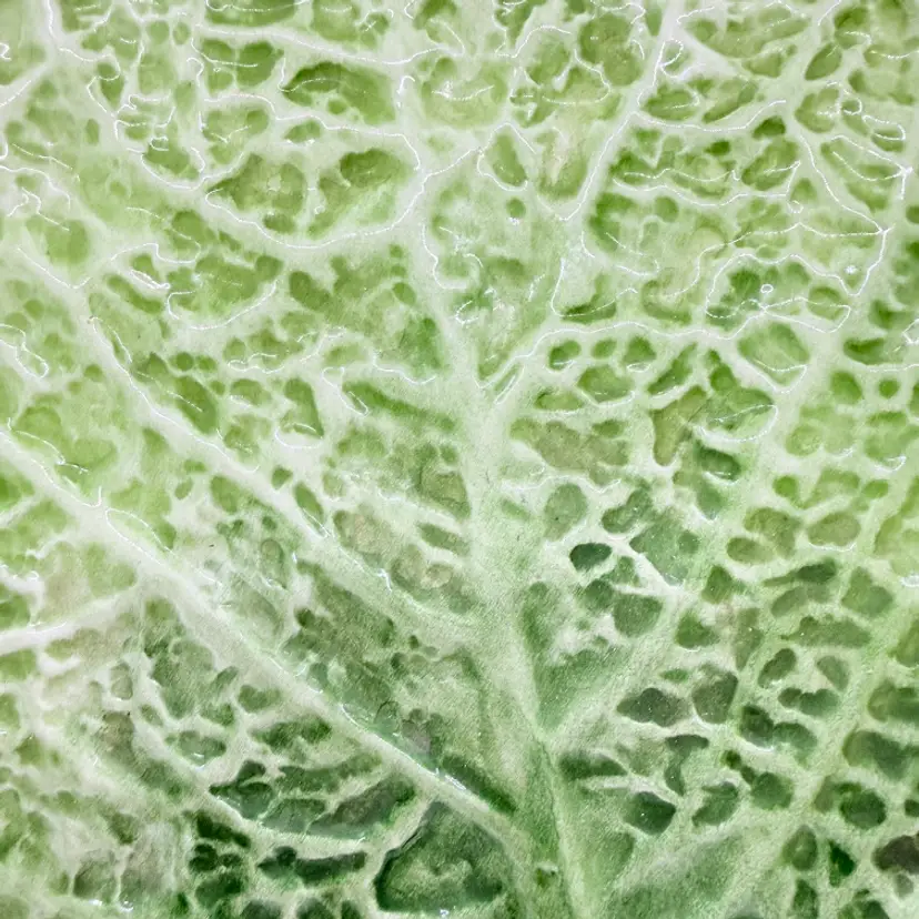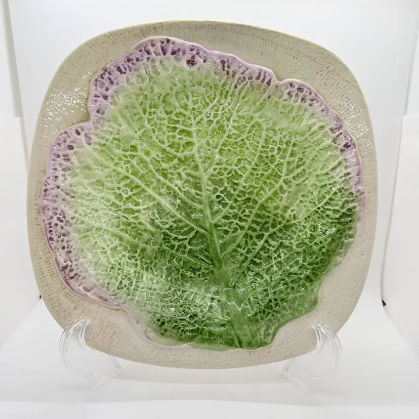 Vintage Italian Pottery Cabbage Leaf 11.5” Platter Plate by Ceramiche Leonardo. No chips or cracks, signs of light wear and use.