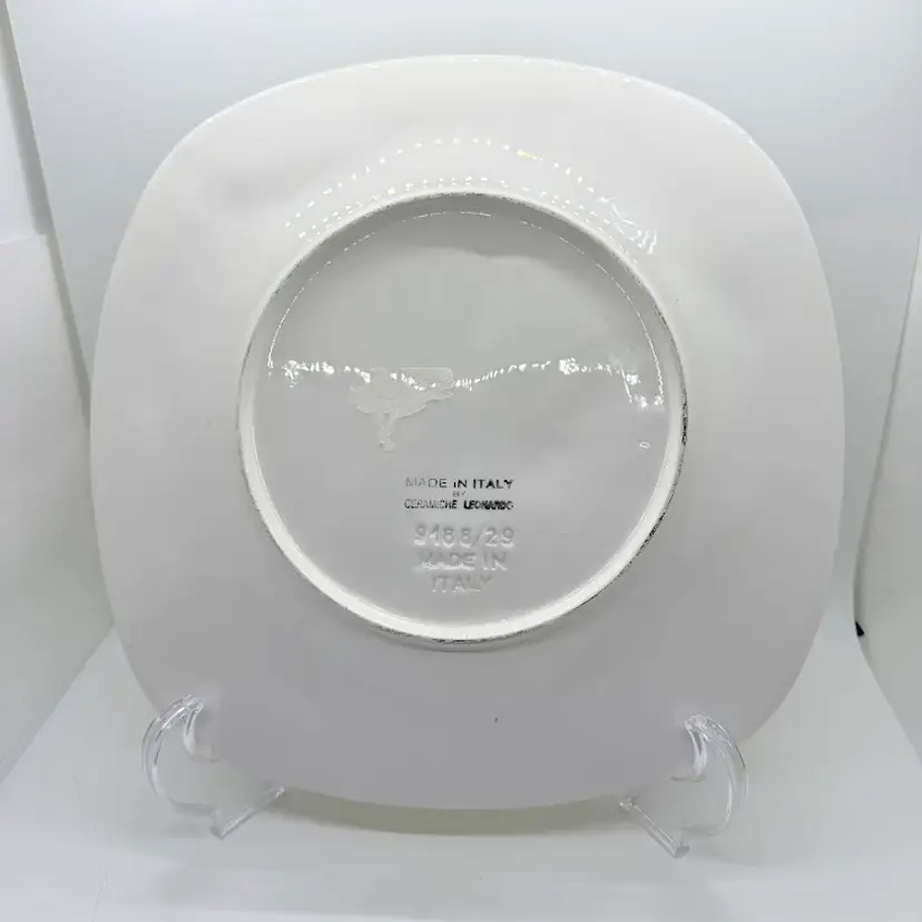 Keywords: ceramic, majolica, serving, home, decor, decorative, dinning, Italy, marked, organic, garden, plant, green, purple, tan, beige, replacement, spring, Easter