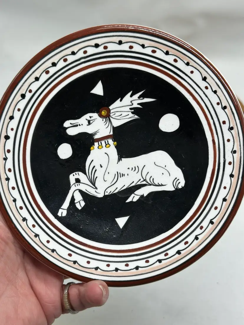 Vintage Italy Siena Hand Painted ART Pottery Resting Deer Buck Italian